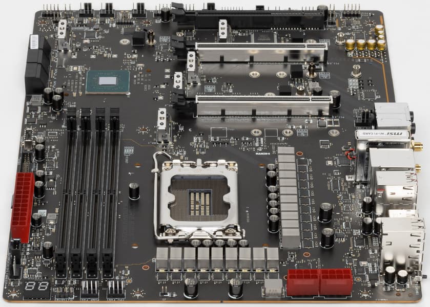 Форм-фактор ATX имеет размеры до 305×244 мм, а E-ATX — до 305×330 мм. Материнская плата MSI MPG Z690 Carbon WiFi имеет размеры 305×244 мм, поэтому выполнена в форм-факторе ATX, и на ней имеются 9 монтажных отверстий для установки в корпус.