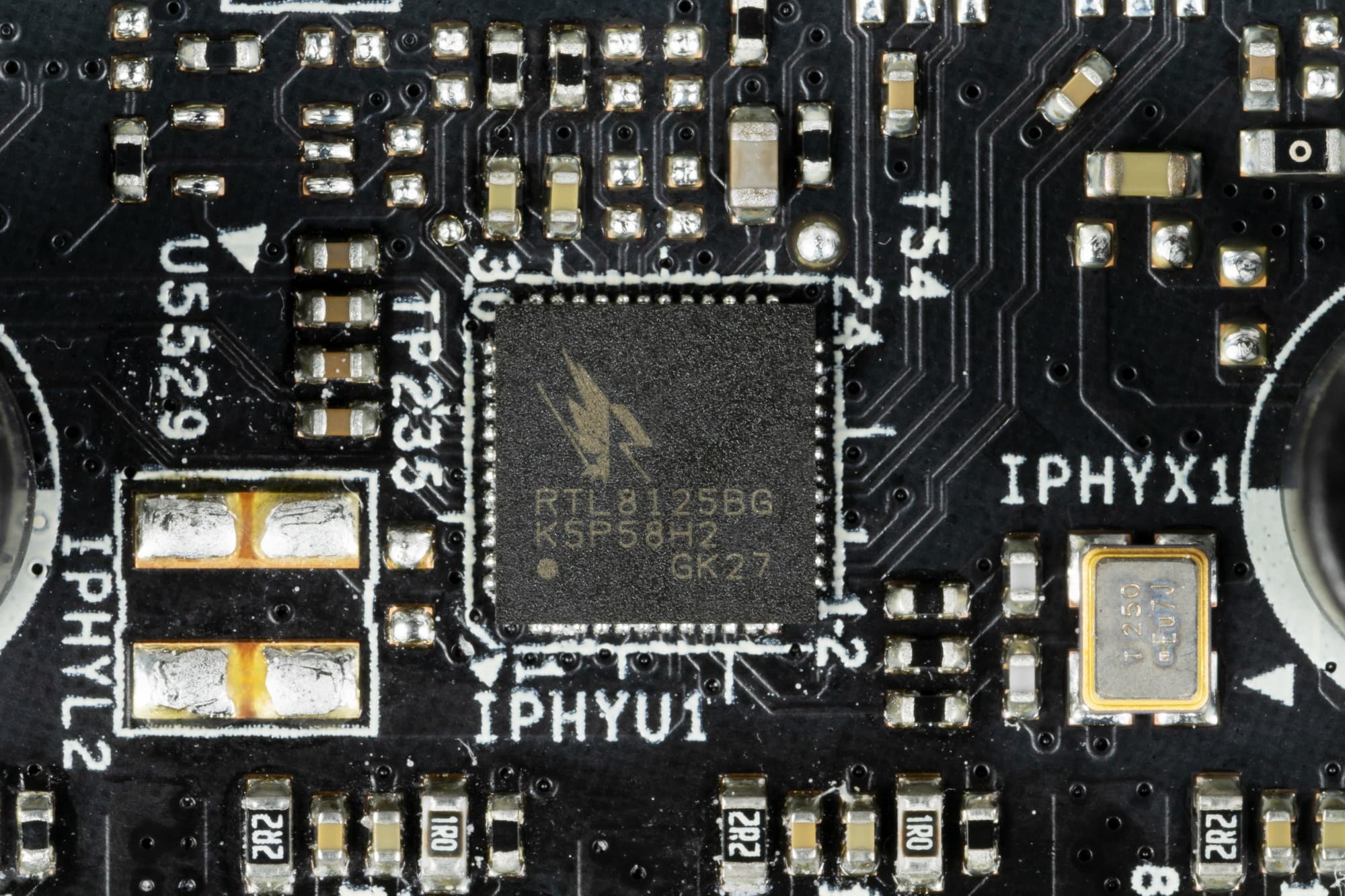 Материнская плата оснащена средствами связи прилично. Имеется скоростной Ethernet-контроллер Realtek RTL8125BG, способный работать по стандарту 2,5 Гбит/с.