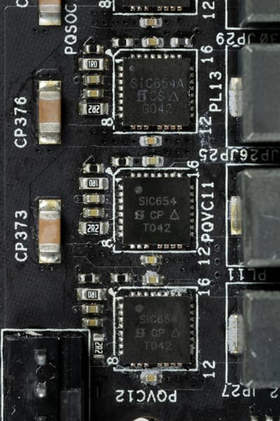 Каждый канал фазы имеет суперферритовую катушку и MOSFET SiC654A от Vishay.