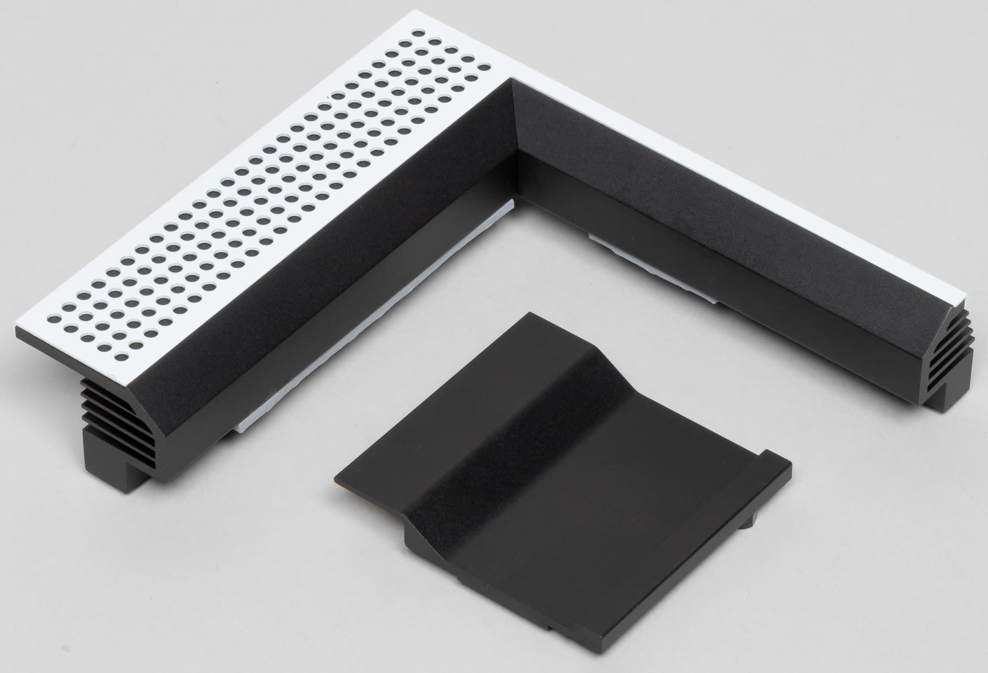 VRM-секция имеет свой сдвоенный радиатор, части которого соединены под прямым углом.