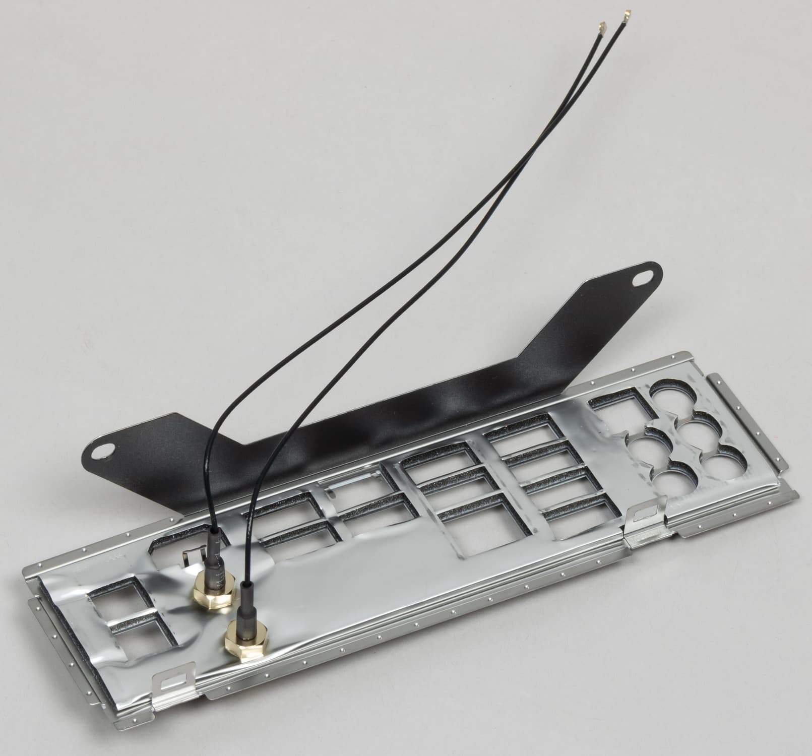 Комплект поставки минимален. Кроме традиционных элементов типа руководства пользователя и кабелей SATA (что уже много лет является обязательным набором ко всем материнкам), имеются: винтики для монтажа модулей M.2 и антенны для беспроводной связи.