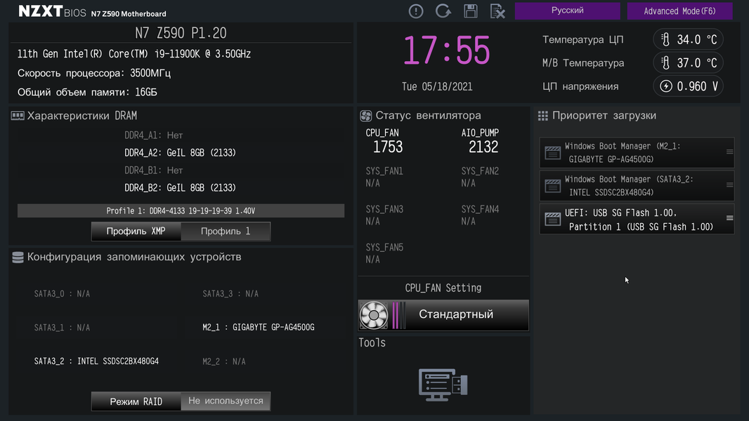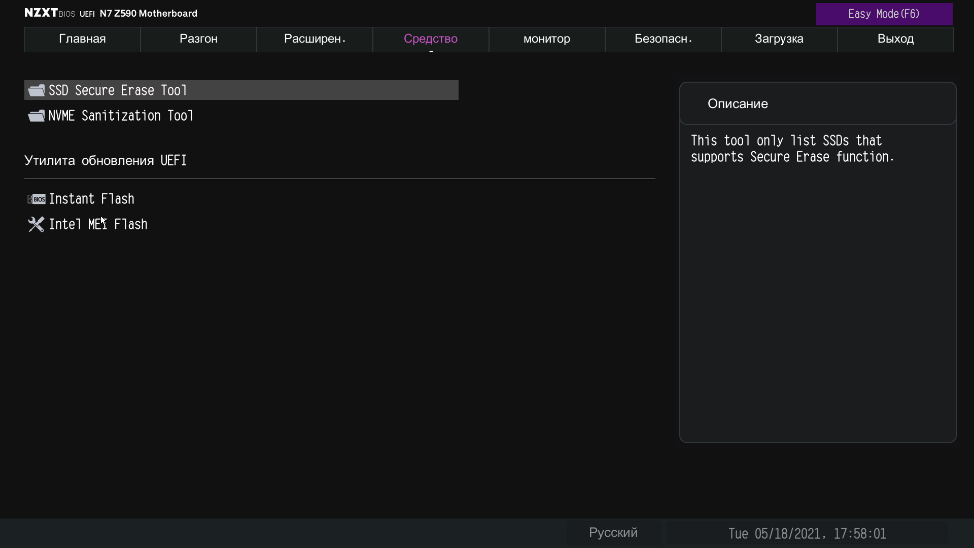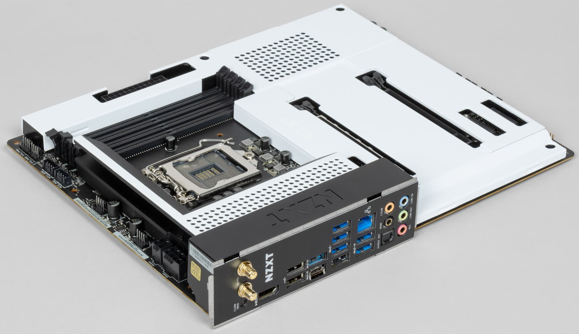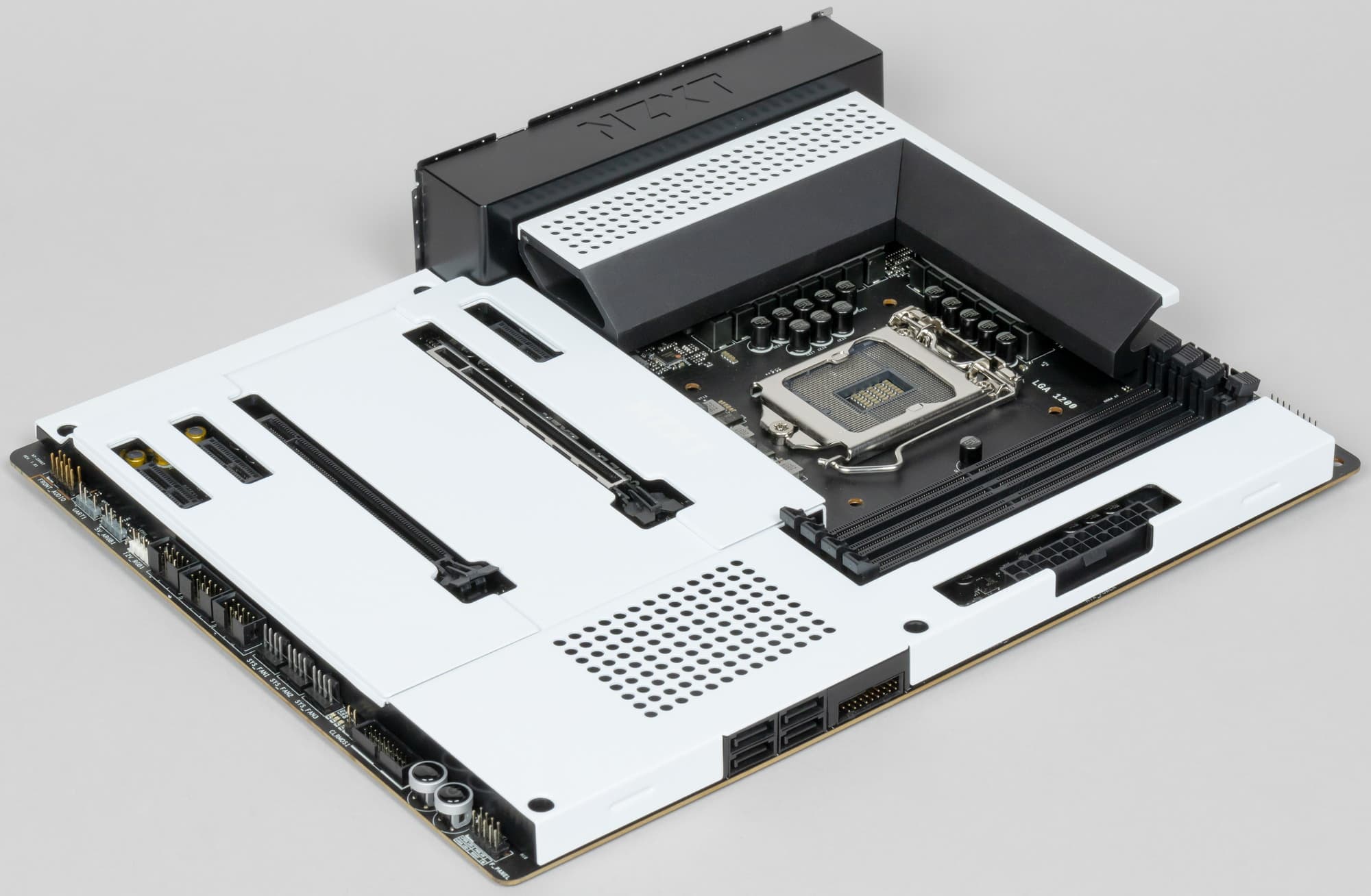 Плата NZXT N7 Z590 рассчитана на тех, кому не требуются разгон и уникальные возможности. Это, скорее, середнячок, главное достоинство которого — нетипичный стильный дизайн, сочетающийся с фирменными корпусами NZXT и их же системами охлаждения.