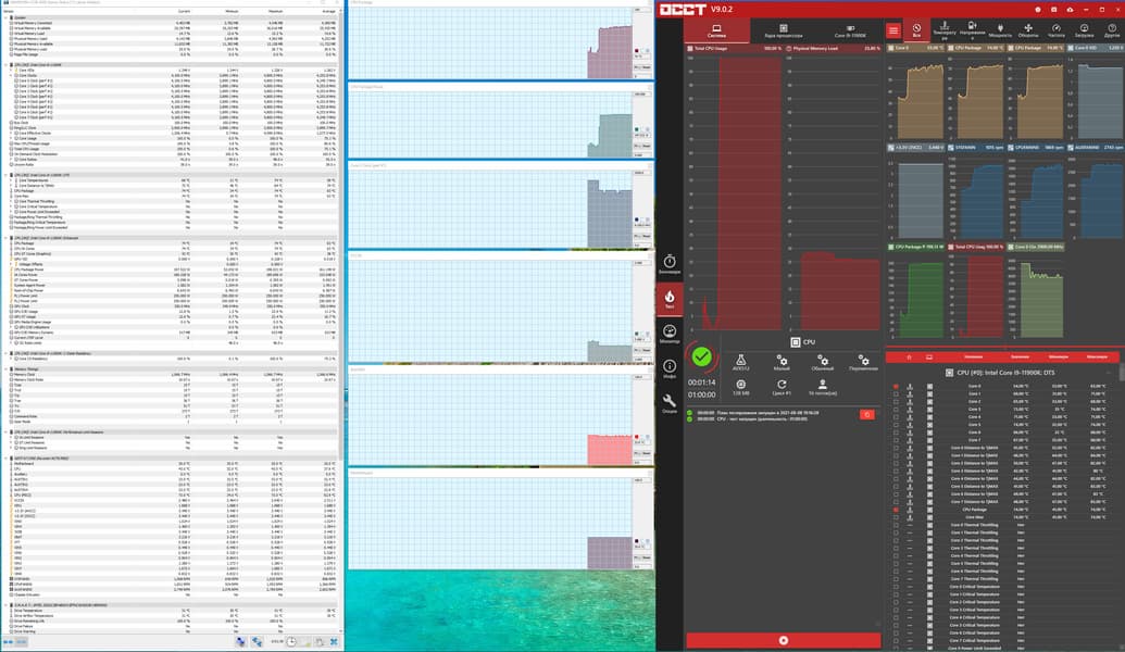 То есть в сумме такая система способна на работу с токами очень приличной величины, достаточной даже для самого мощного i9-11900K, но без особого запаса, так что вряд ли стоит ожидать, что Turbo Boost позволит поднять частоты работы ядер даже до 5 ГГц, не говоря уж о большем. В принципе, наверно такого рода платы больше годятся для 11600/11400 процессоров.