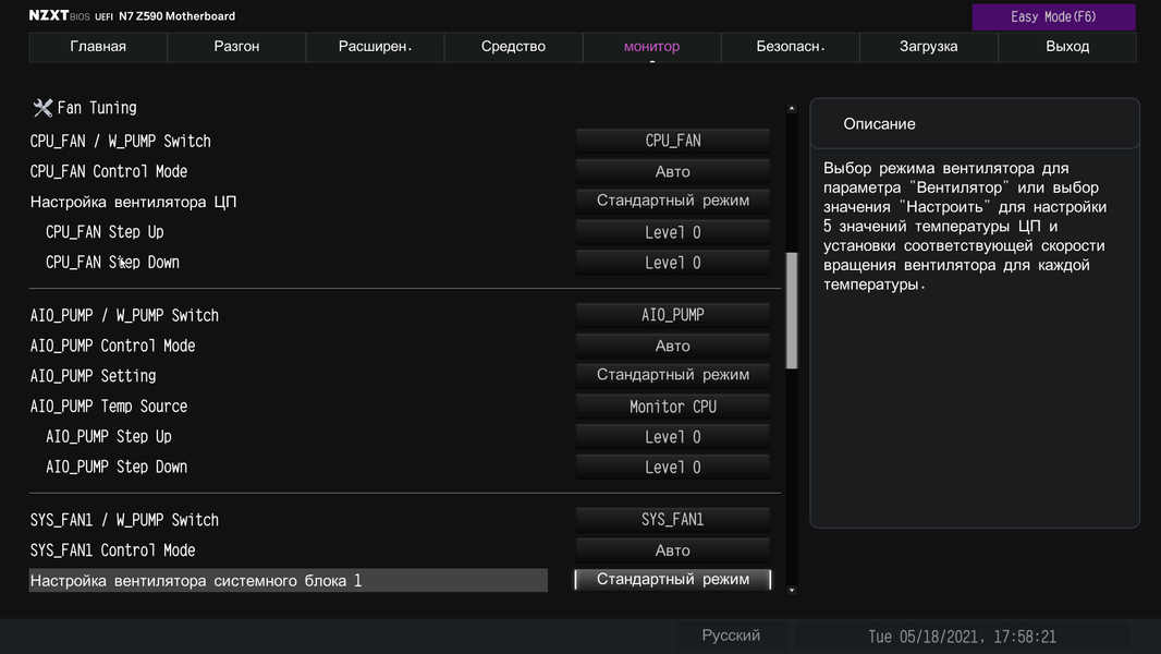 Теперь про блок ввода-вывода, разъемы для подключения вентиляторов и т. п. Разъемов для подключения вентиляторов и помп — 7. Через ПО или BIOS контролируется все 7 гнезд для подключения воздушных вентиляторов или помп: могут управляться как через ШИМ, так и банальным изменением напряжения/тока.