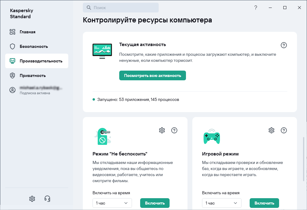 Функции Kaspersky Standard можно настроить для достижения оптимального уровня защиты и производительности компьютера. Вот некоторые из доступных настроек.