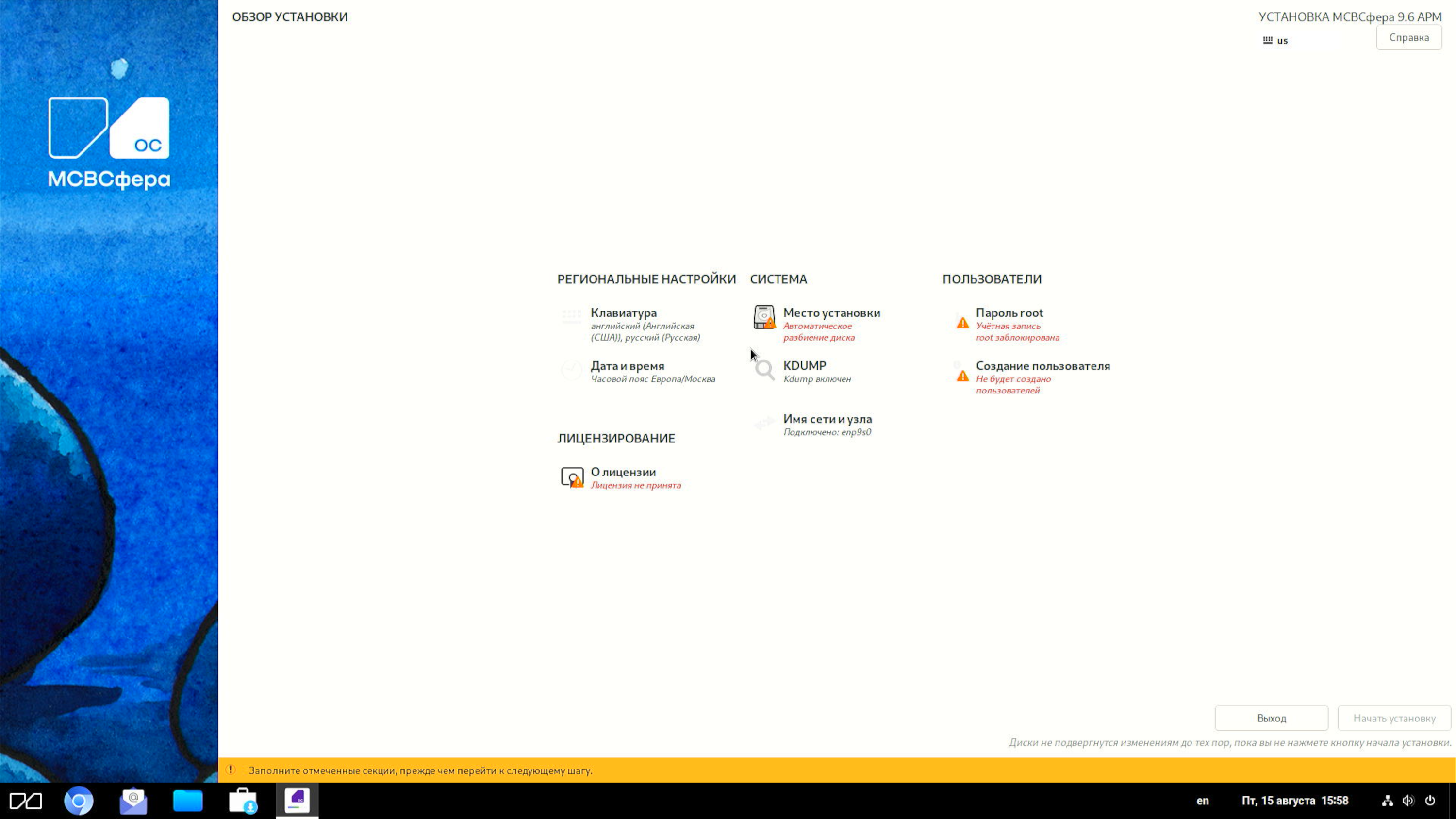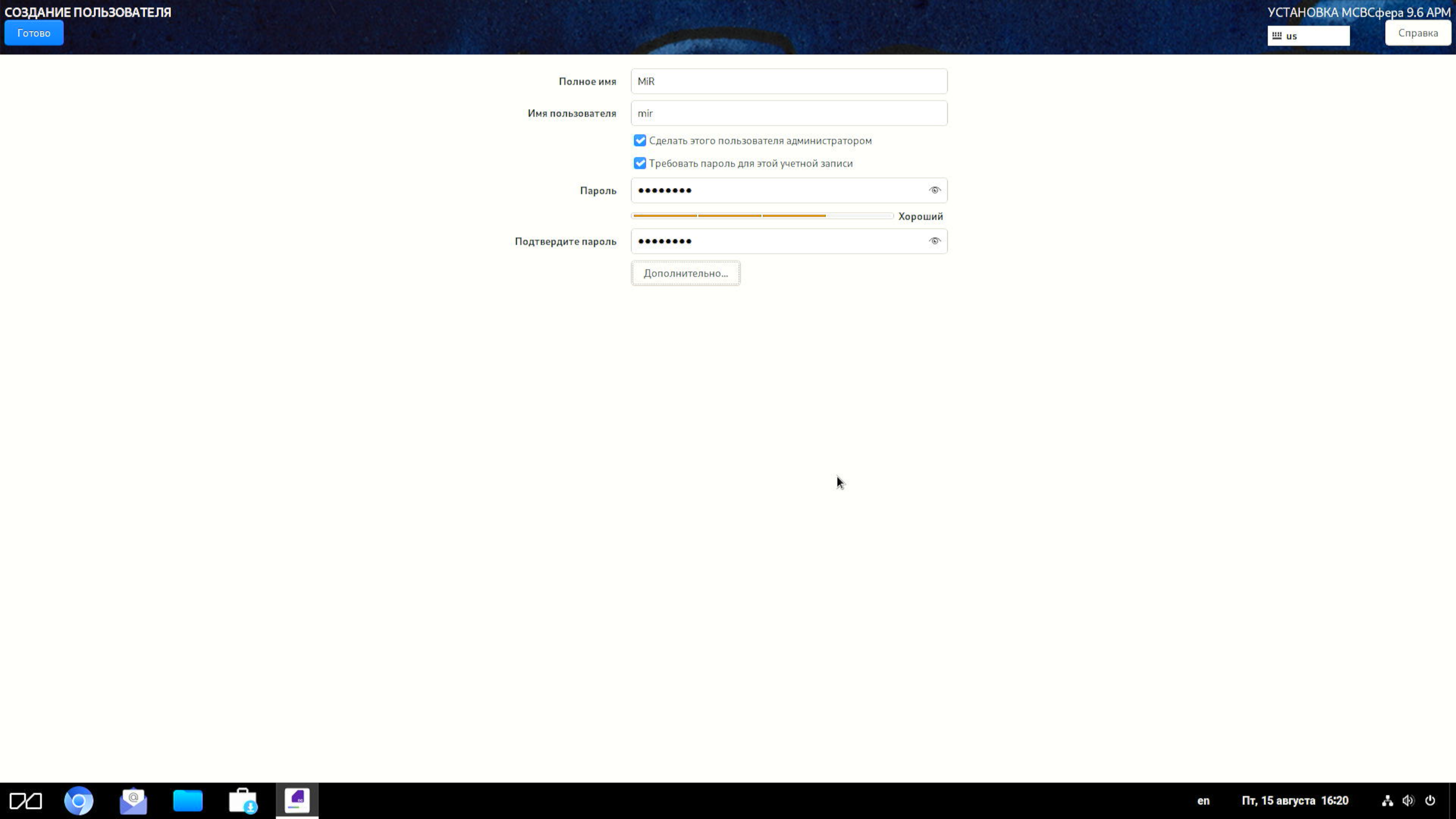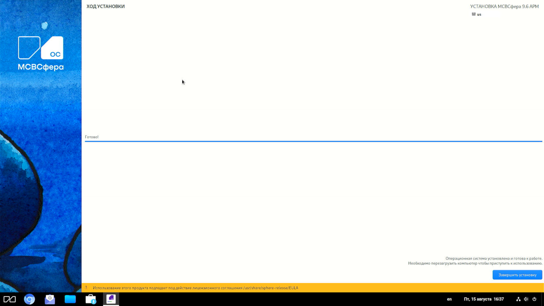 Установка закончена. По ее завершении можно сказать, что патогномоничный симптом неизлечимой болезни Linux — скверный вид меняющихся окон в ходе установки — присущ и «МСВСфере». Однако у этого недуга есть и свое достоинство: обычный пользователь смотрит на все это всего один раз (для одного дистрибутива). Иное дело — ИТ-специалист крупного предприятия. Но ему обычно платят зарплату, которая, в принципе, должна покрывать ущерб от подобных неудовольствий.