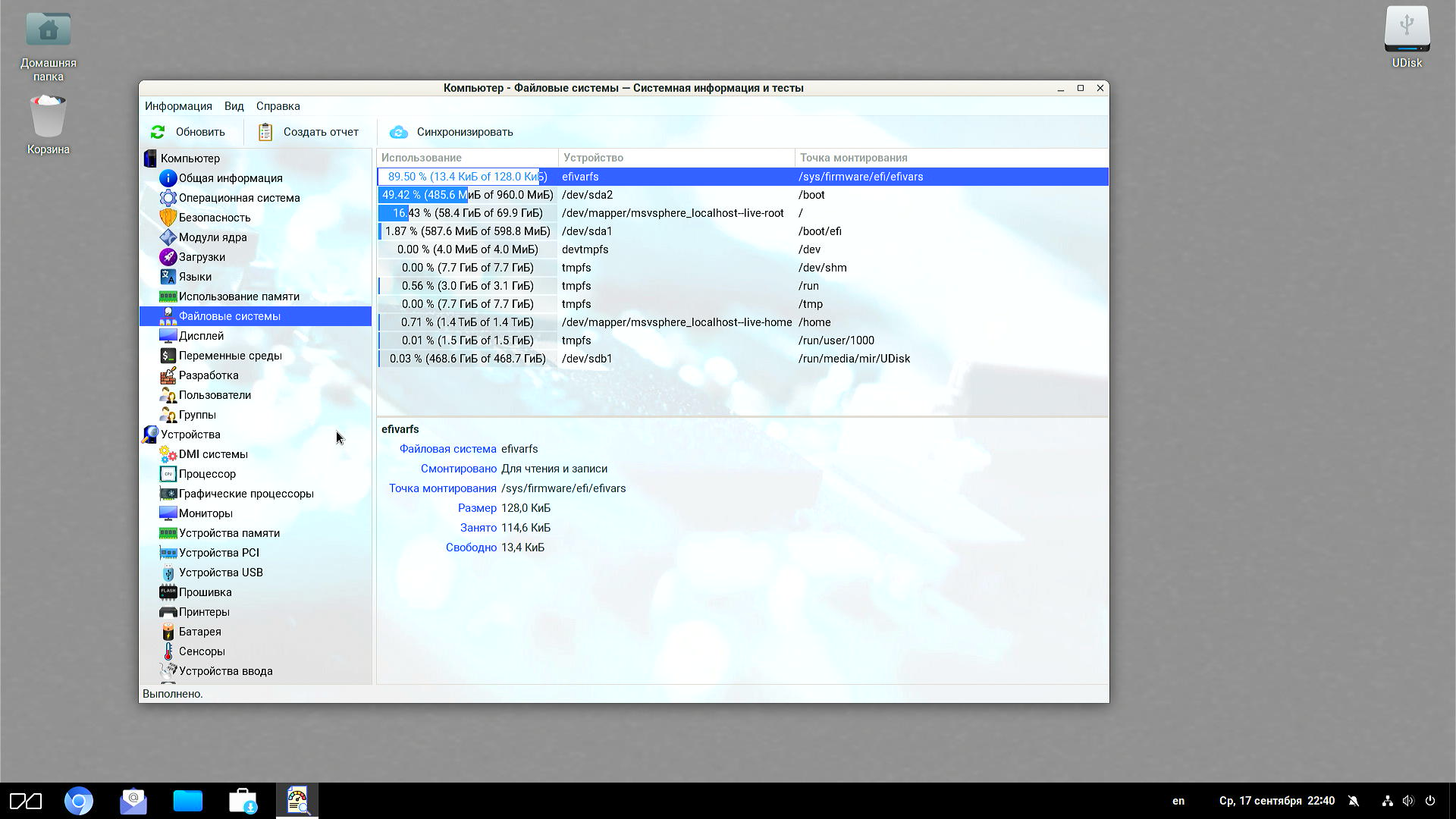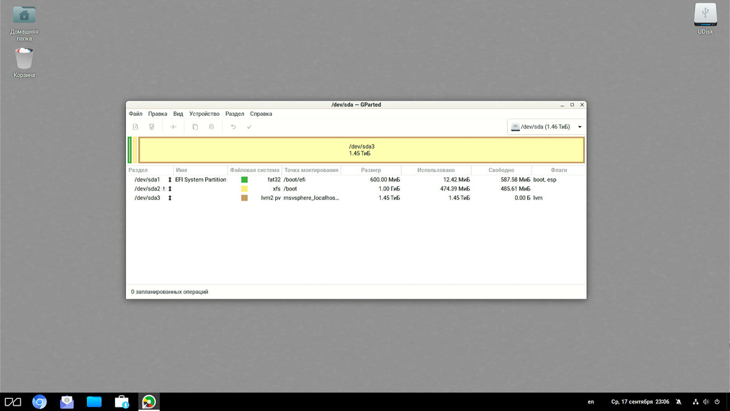 Системное приложение GParted (редактор разделов накопителей) дает возможность изменять размеры разделов и перераспределять между ними свободное пространство.