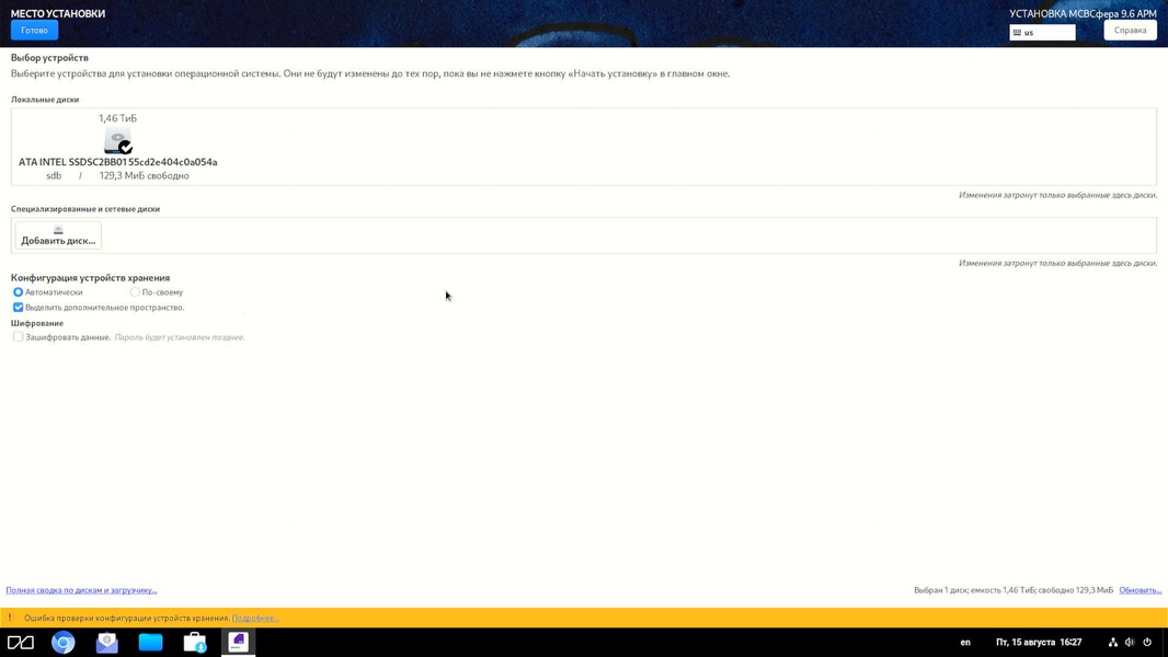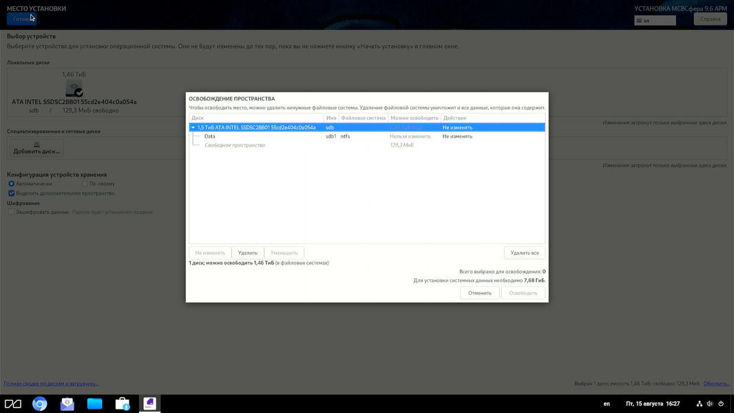 Перед началом собственно установки на накопитель необходимо произвести настройку всех параметров на экране.