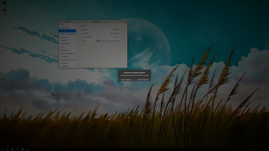 Переключение разрешения монитора с 4K (первый скриншот) на Full HD (второй скриншот) происходит без проблем.