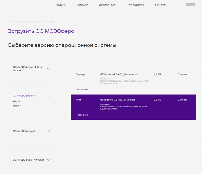 «МСВСфера», разработанная для нужд Вооруженных сил России, появилась в 1999 г., и мы не можем, к сожалению, описать ее базу (нужно учесть специфику заказчика). Ubuntu, основанная на Debian, появилась в 2004 г., но двумя годами ранее «МСВСфера» уже была введена в эксплуатацию в соответствующих учреждениях и получила первый сертификат безопасности. В 2015 г. разработчики переиздали «МСВСфера» на CentOS (деривативе RHEL, сиречь Red Hat Enterprise Linux) в версии 6.3 и в двух вариантах: «АРМ» (автоматизированное рабочее место) и «Сервер» (назначение понятно из названия). В 2022 г. Softline интегрировала в свою инфраструктуру разработчиков продукта, сама ОС была включена в реестр российского ПО, и в 2023 г. под брендом «Инферит» было создано несколько направлений софтверного бизнеса, в том числе «Инферит ОС». В 2025 г. выпущена «МСВСфера» 9.6, а в скором времени ожидается появление десятой версии (с ней уже можно познакомиться на сайте производителя). Стабильный релиз пока не анонсирован, и мы ограничимся обзором версии 9.6.