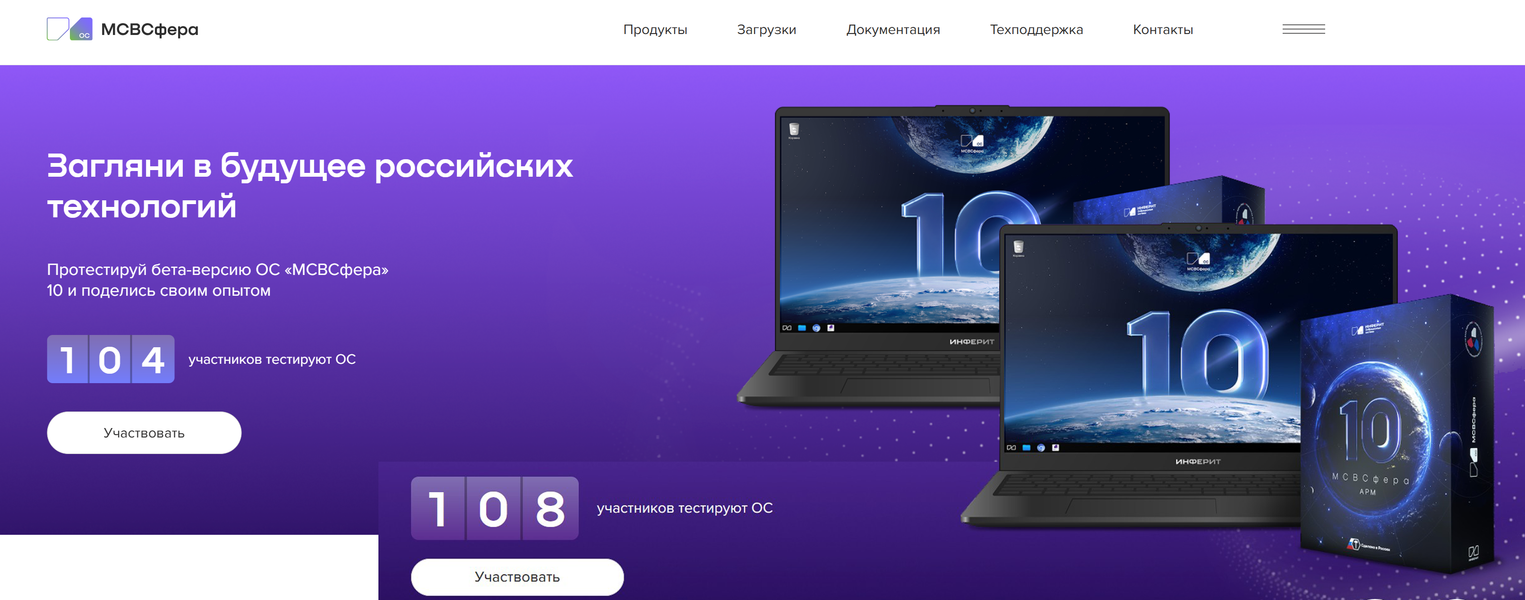 Если зайти на сайт msvsphere-os.ru, можно увидеть счетчик испытаний ОС «МСВСфера» версии 10 (эта сборка пока не считается стабильной).