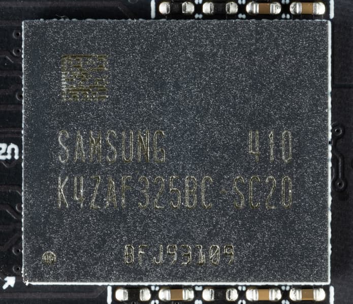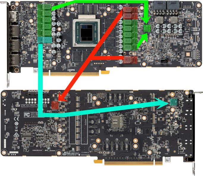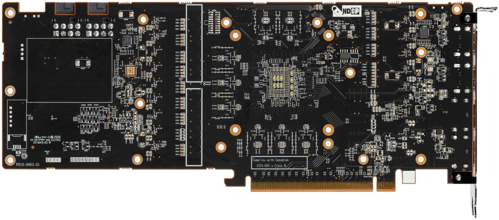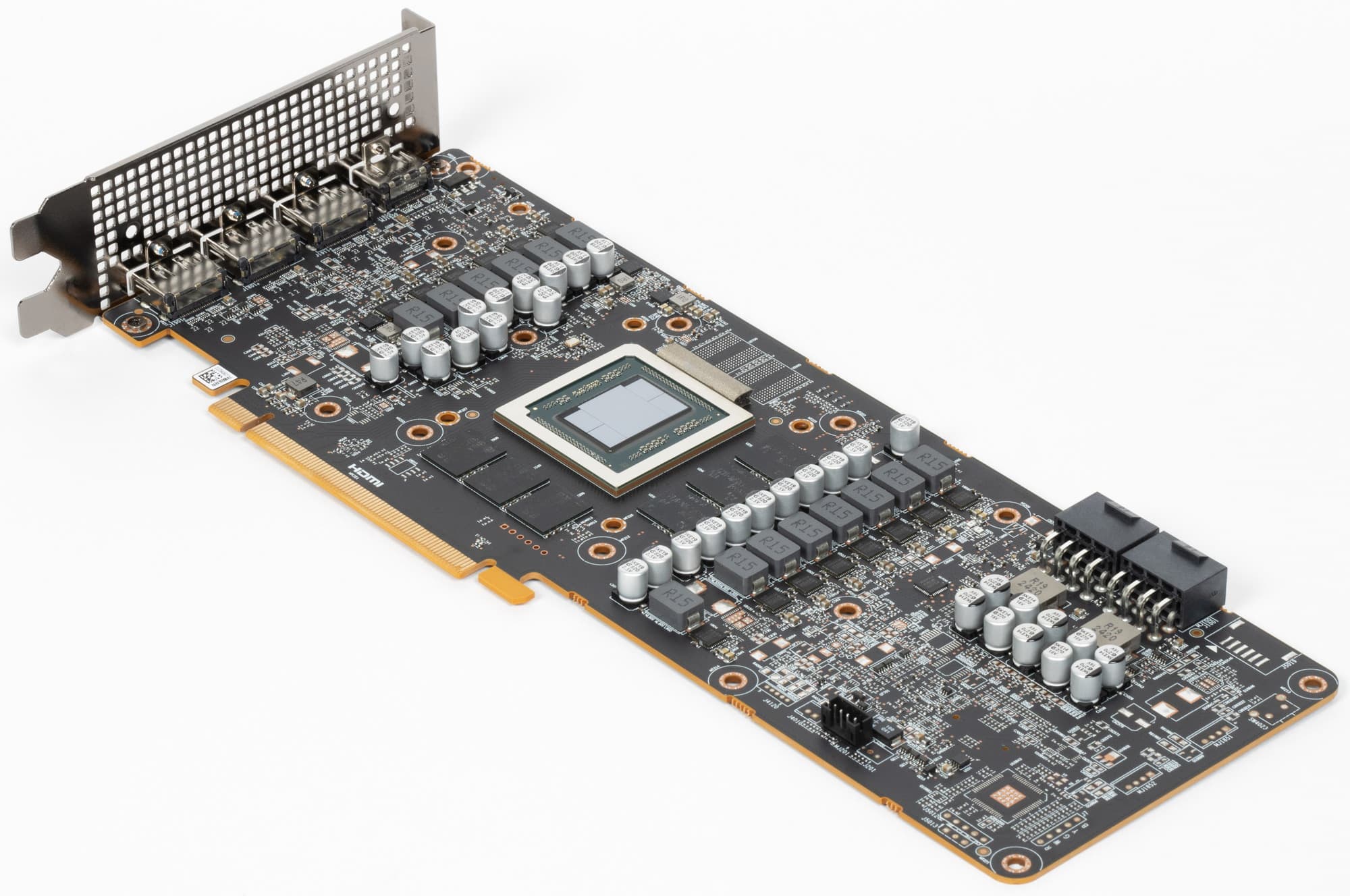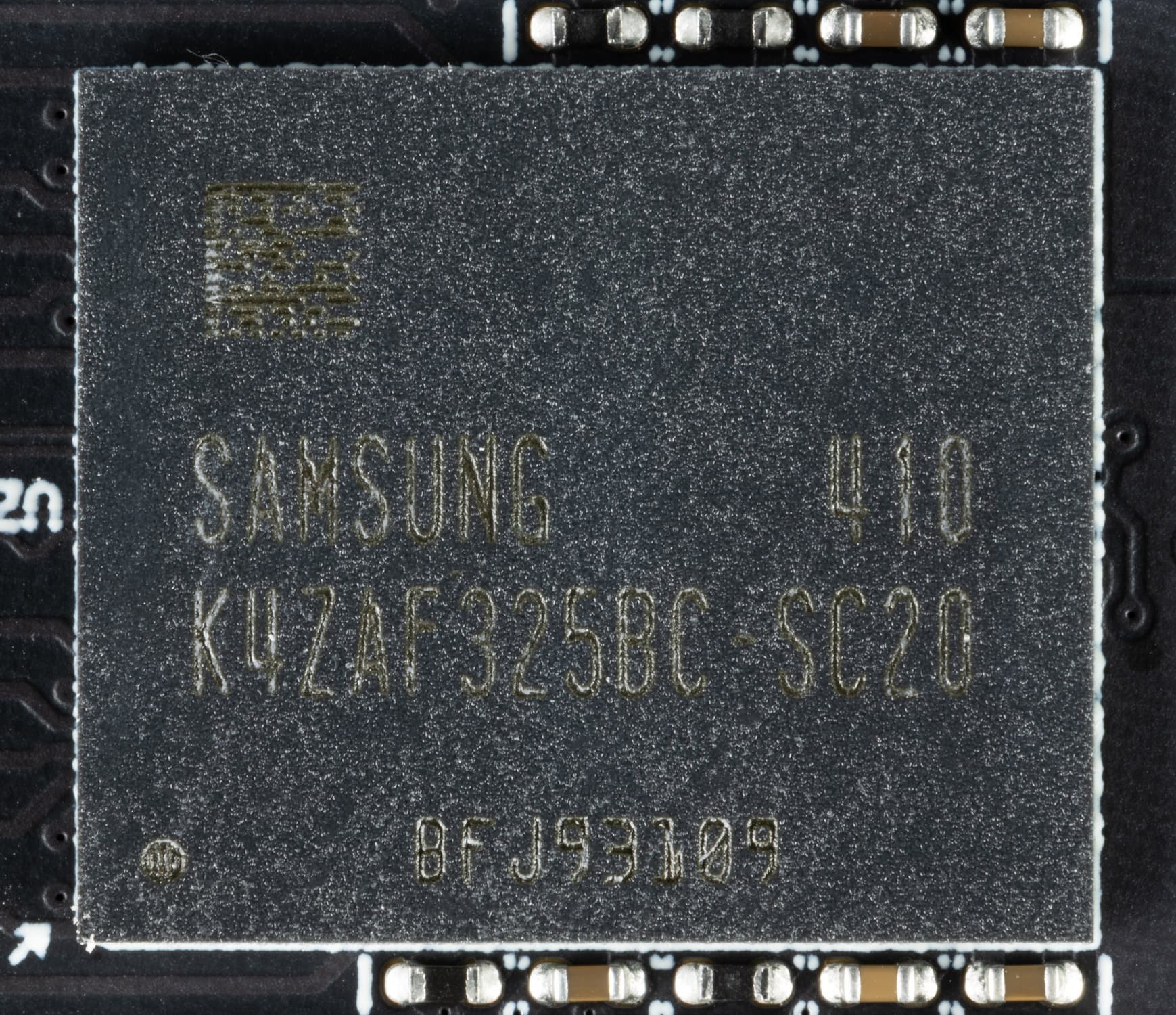 Карта имеет 12 ГБ памяти GDDR6 SDRAM, размещенной в 6 микросхемах по 16 Гбит на лицевой стороне PCB. Микросхемы памяти Samsung (K4ZAF325BC-SC20) рассчитаны на номинальную частоту работы в 2500 (20000) МГц.