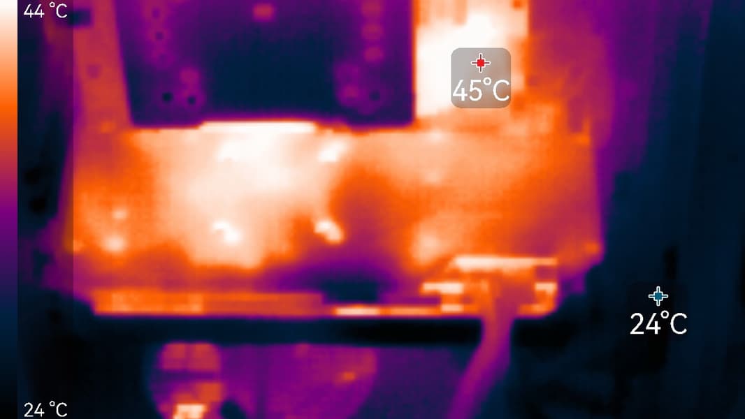 В режиме простоя в 2D температура была не выше 30 °C, вентиляторы не работали, уровень шума был равен фоновому — 18 дБА.