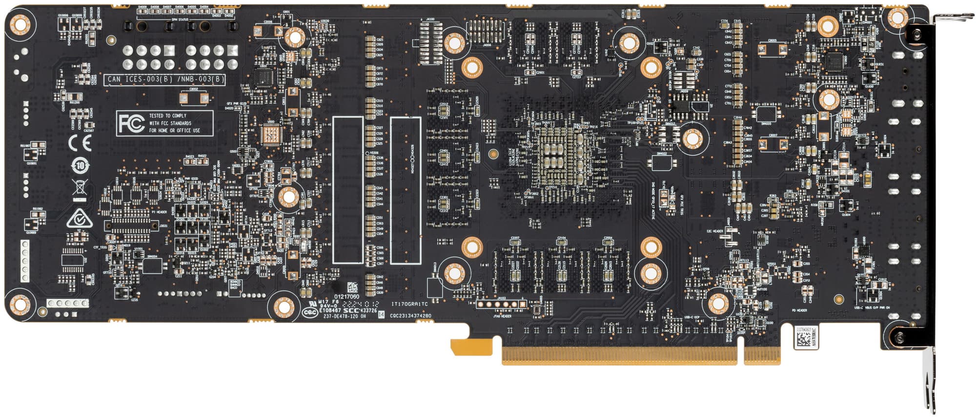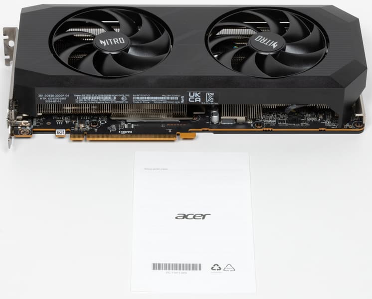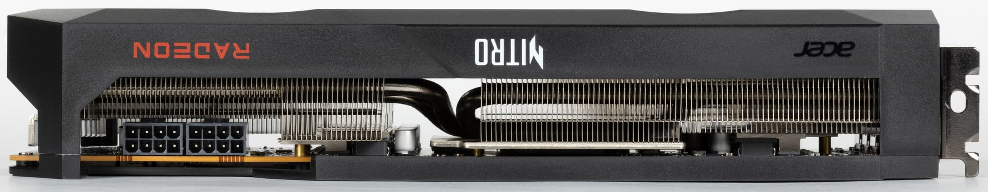 Карта способна потреблять до 259 Вт и имеет два 8-контактных разъема питания версии PCIe 2.0. Габариты этой модели составляют 28 см в длину и 13 см в высоту, а по толщине видеокарта занимает 3 слота в корпусе. Набор видеовыходов: 3 DP 2.1 и 1 HDMI 2.1. Стоит отметить отсутствие подсветки. Acer декларирует 3-летнюю гарантию на эту карту.