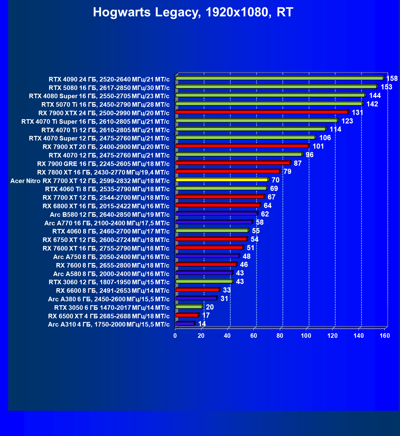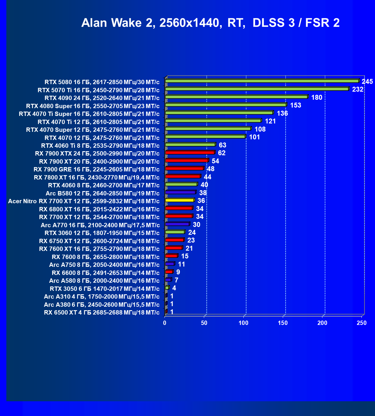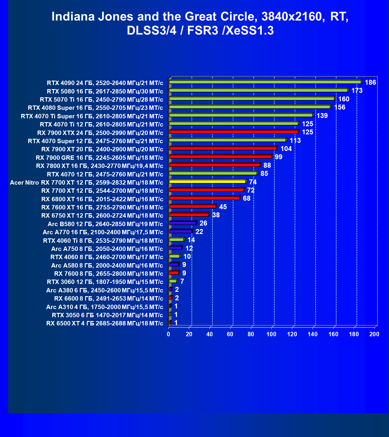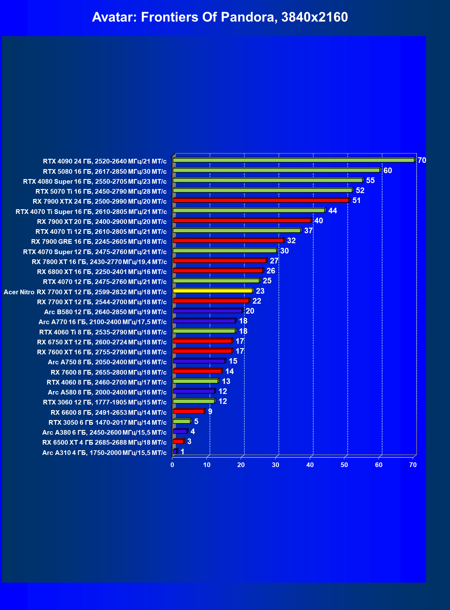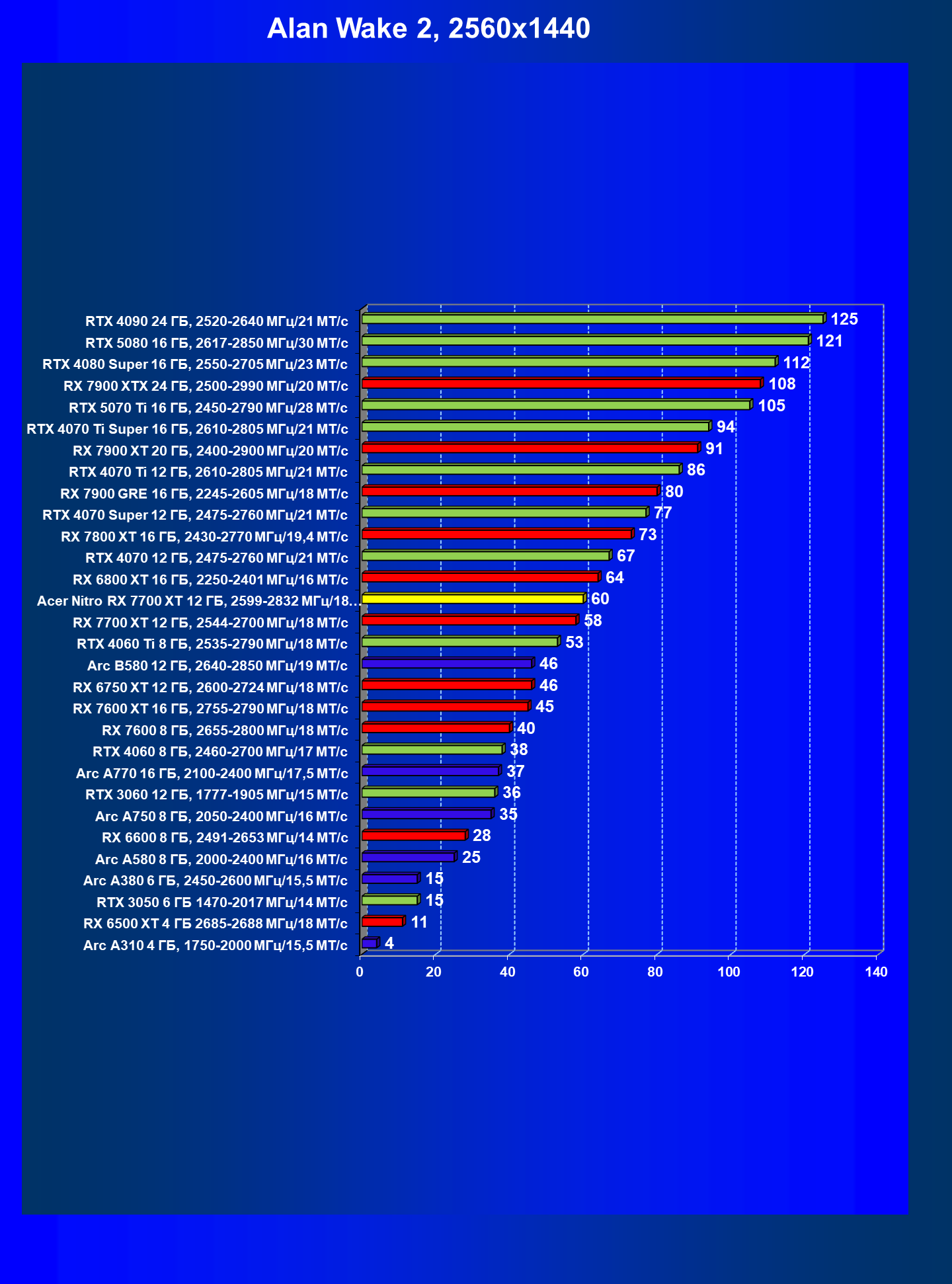 | 15 | RX 7700 XT 12 ГБ, 2544—2700 МГц/18 МТ/с | 1062 | 193 | 55 000 |