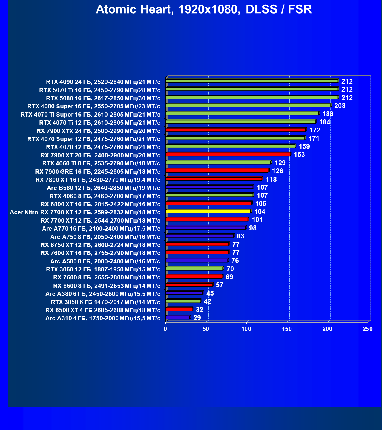 | 25 | RX 6750 XT 12 ГБ, 2600—2724 МГц/18 МТ/с | 212 | 1273 | 60 000 |