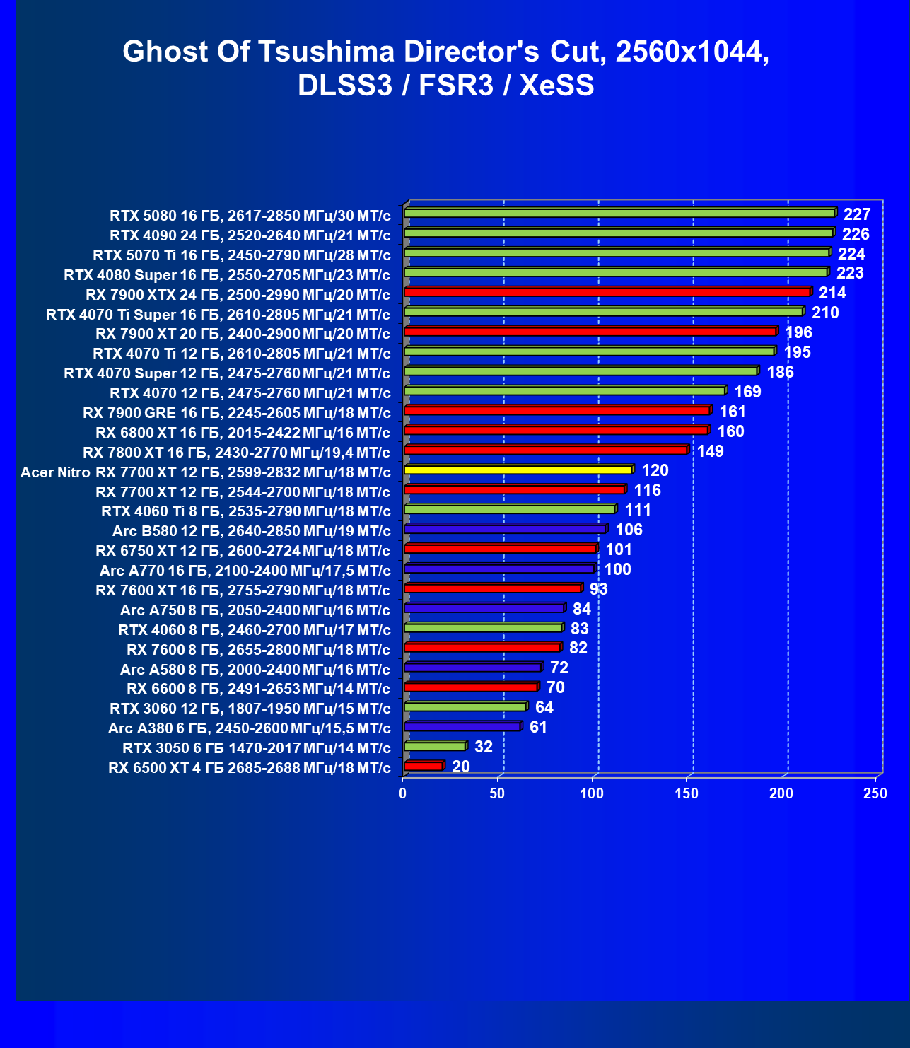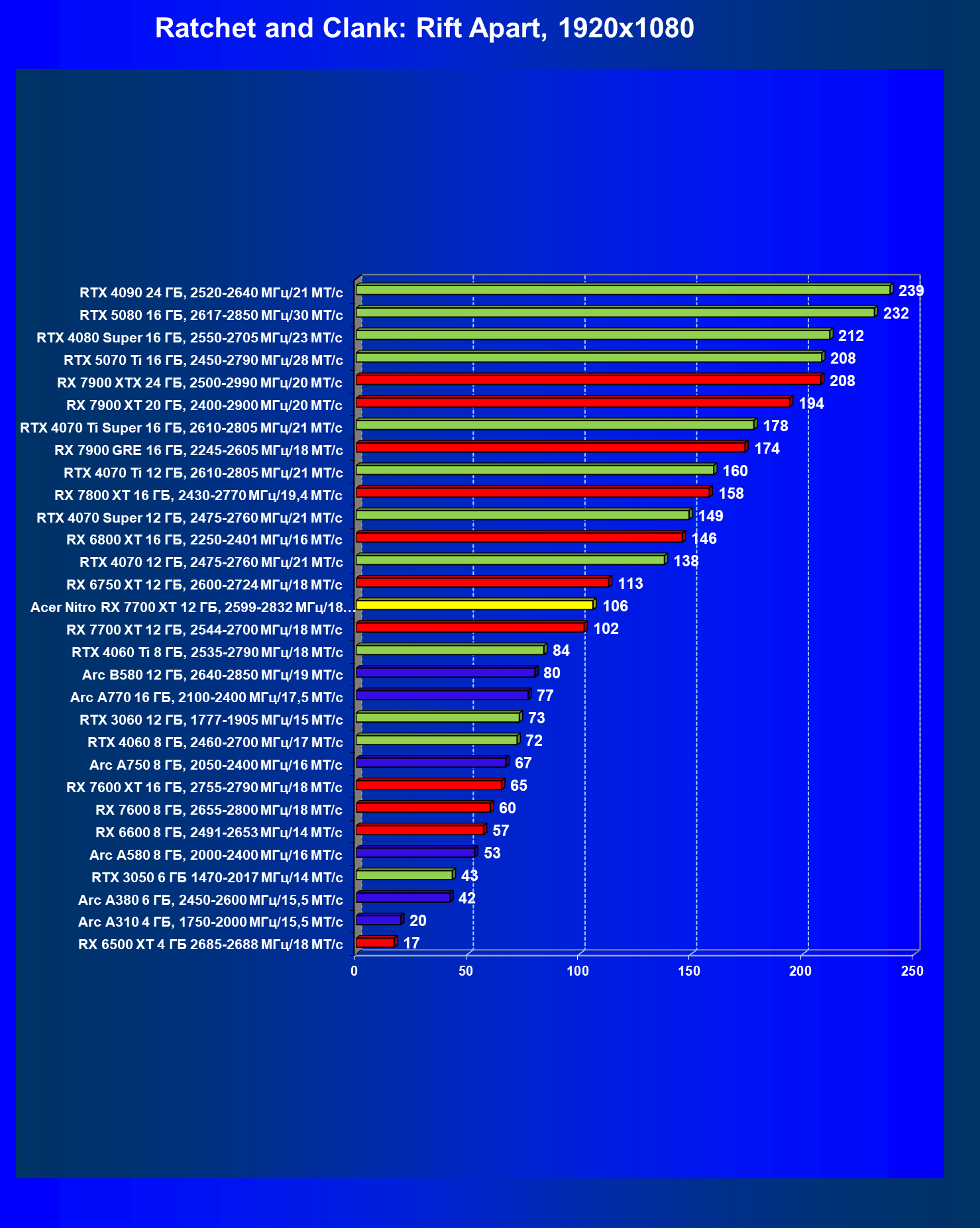 | 06 | RX 7700 XT 12 ГБ, 2544—2700 МГц/18 МТ/с | 193 | 1062 | 55 000 |