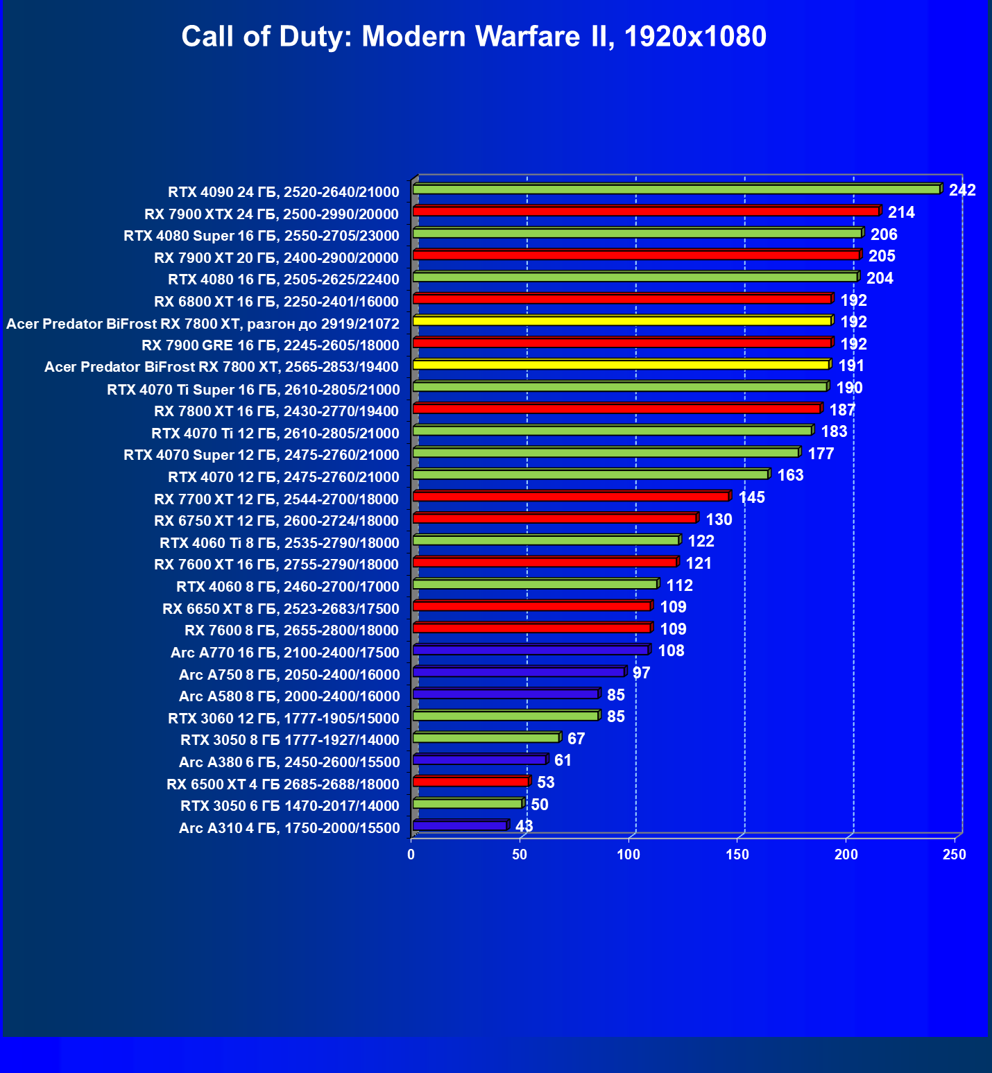 | 12 | RX 7800 XT 16 ГБ, 2430—2770/19400 | 1239 | 217 | 57 000 |