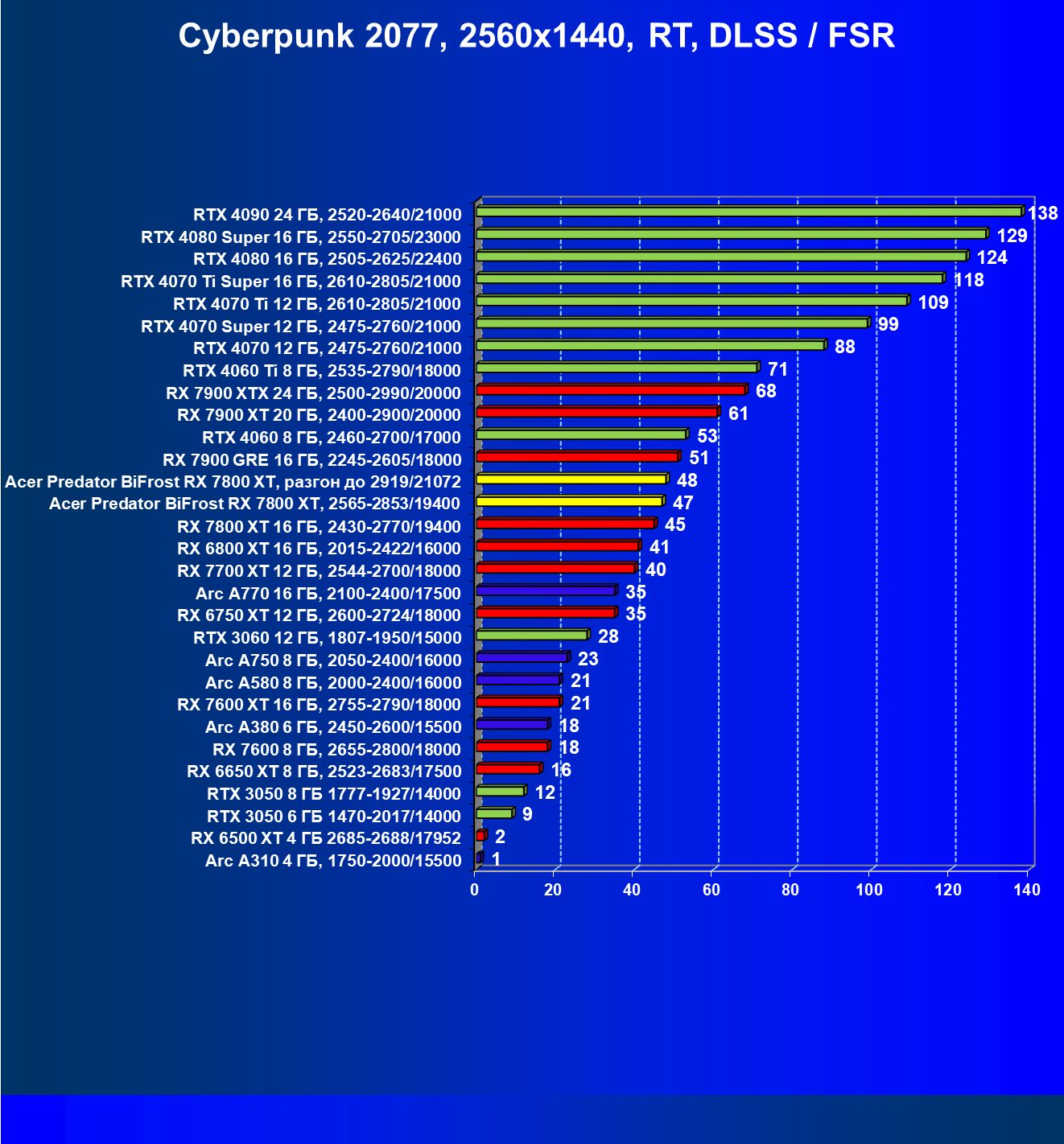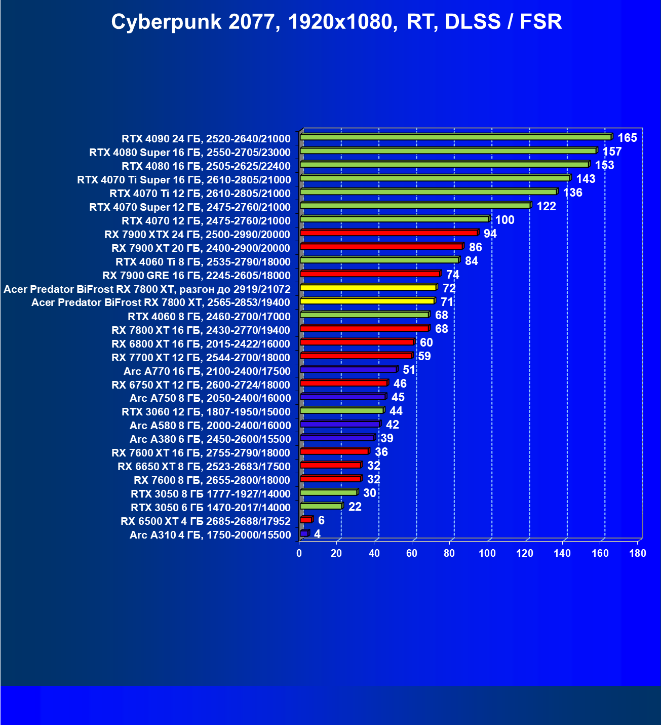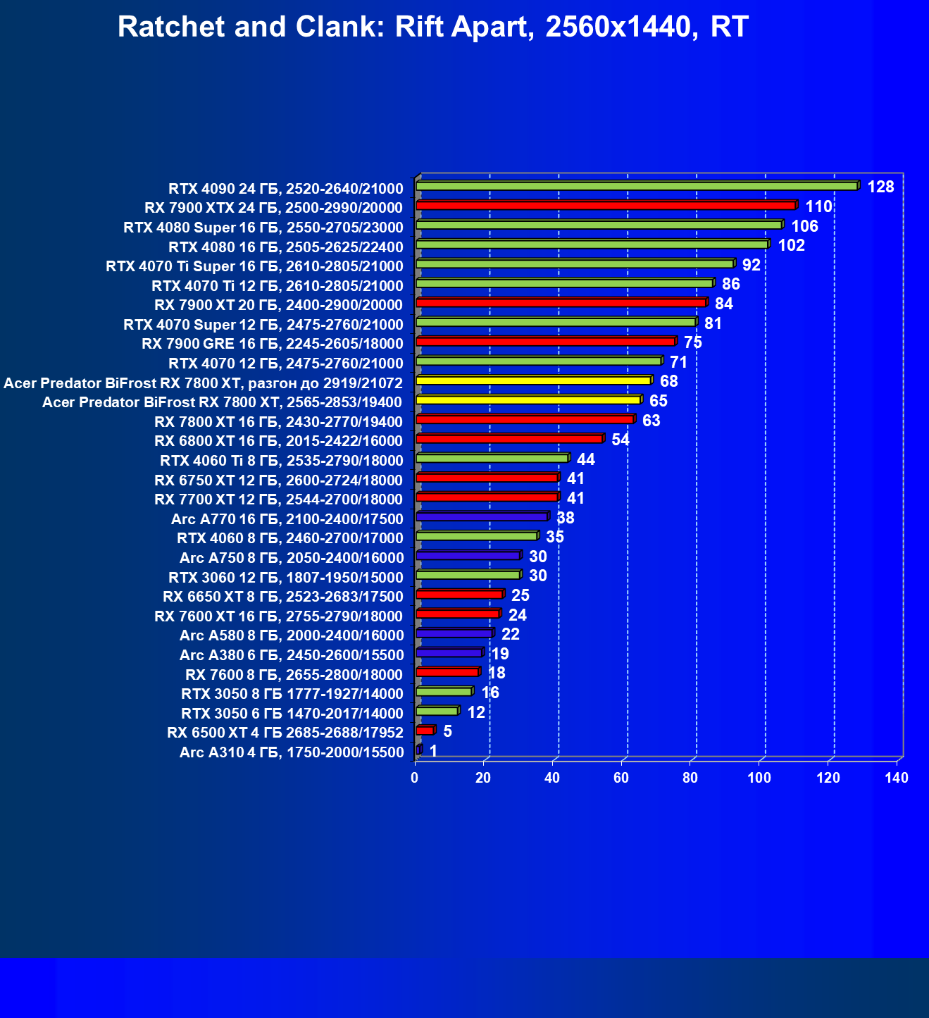 | 10 | Acer Predator BiFrost RX 7800 XT, разгон до 2919/21072 | 1307 | 229 | 57 000 |