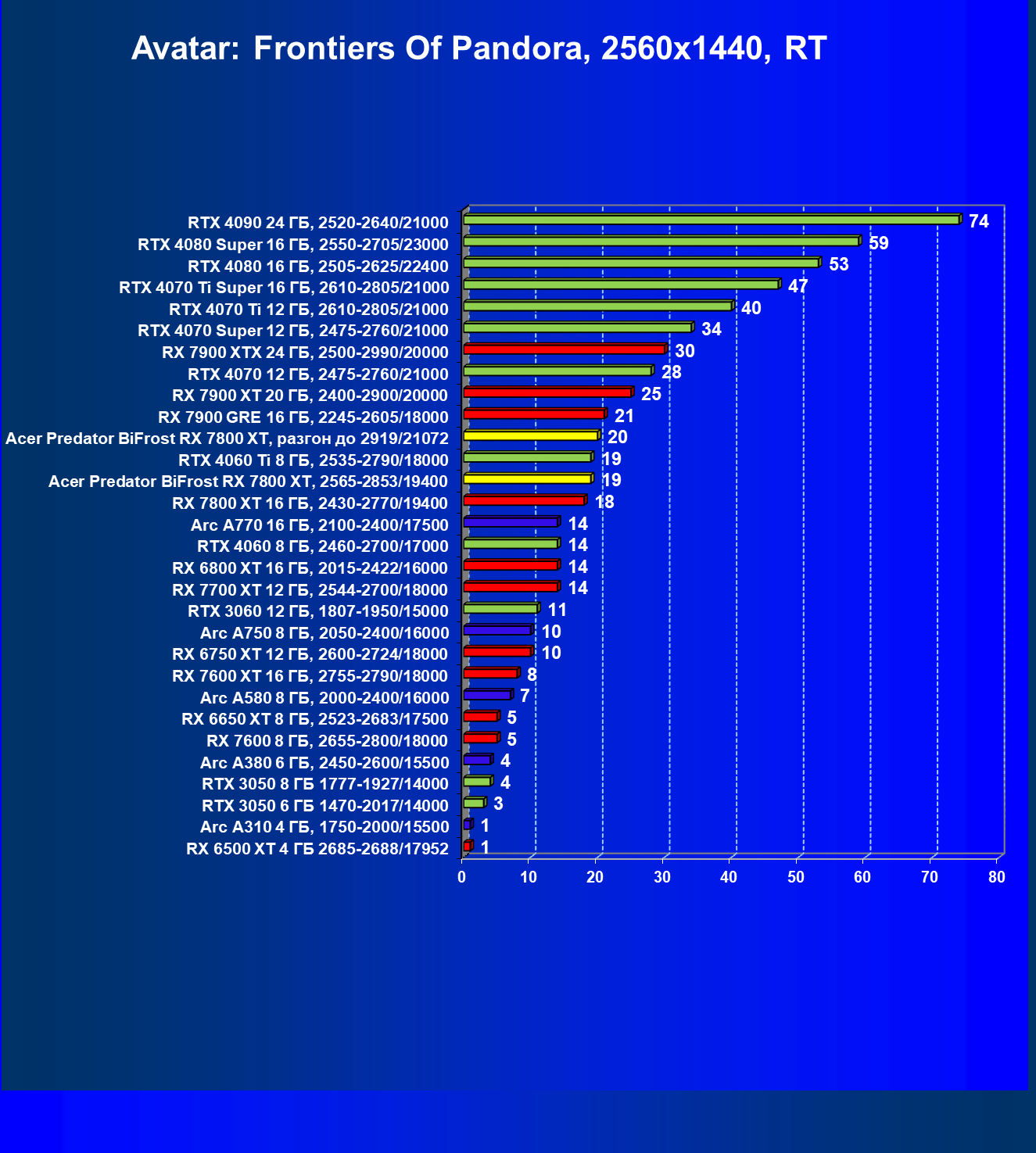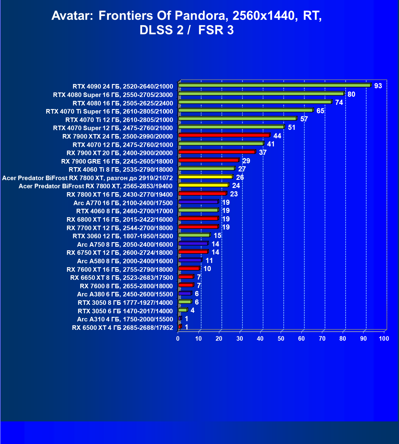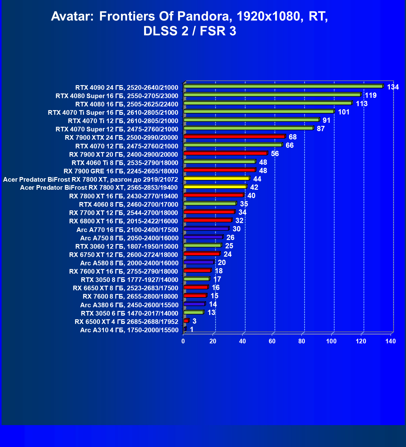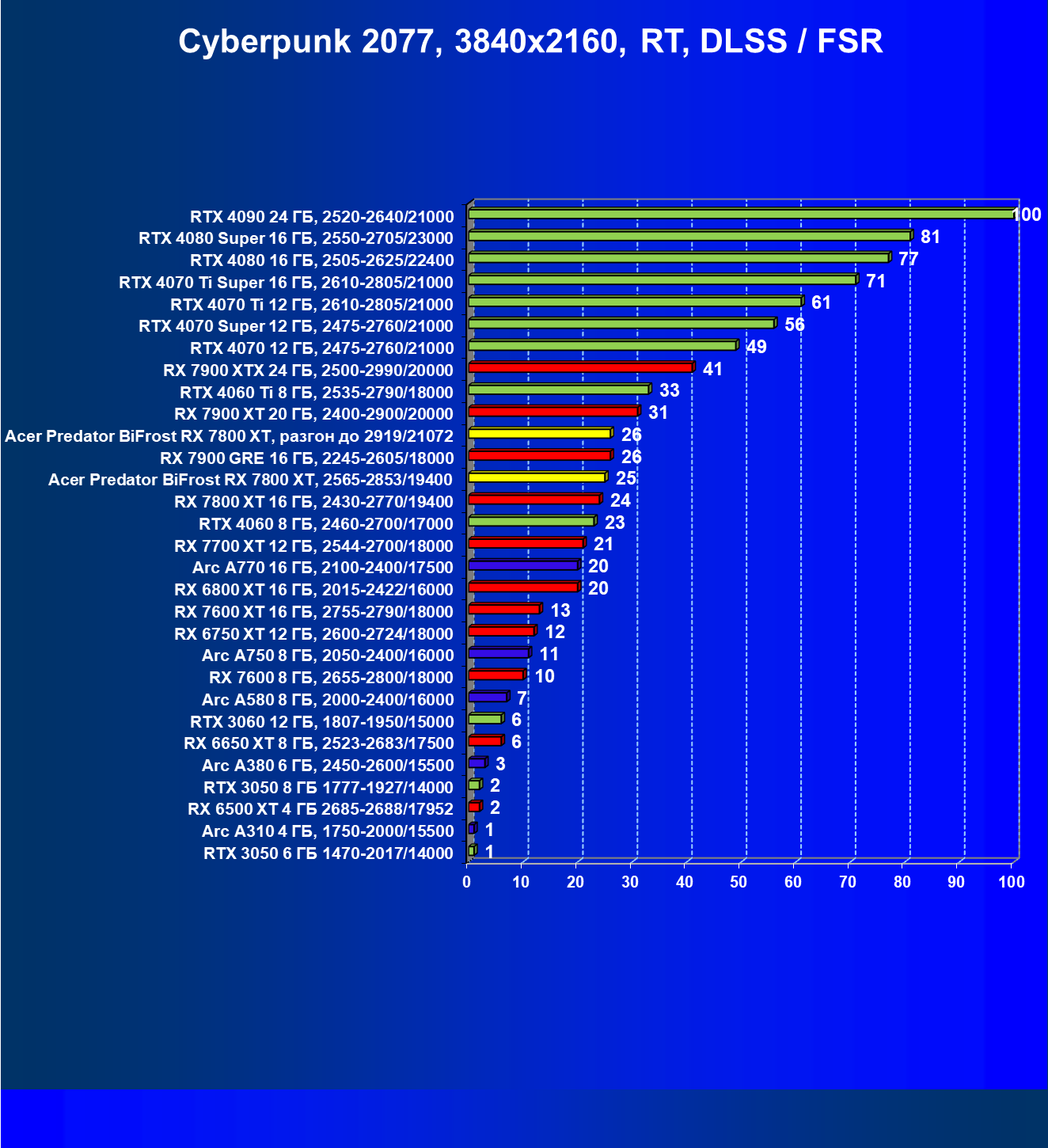 | 10 | Acer Predator BiFrost RX 7800 XT, разгон до 2919/21072 | 1307 | 229 | 57 000 |