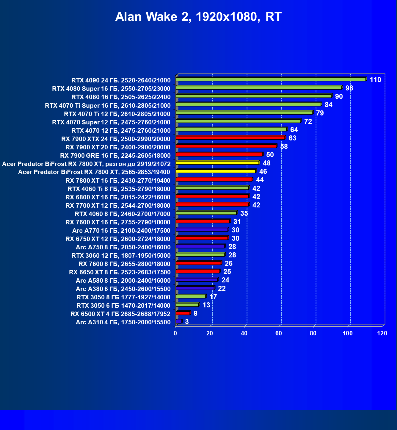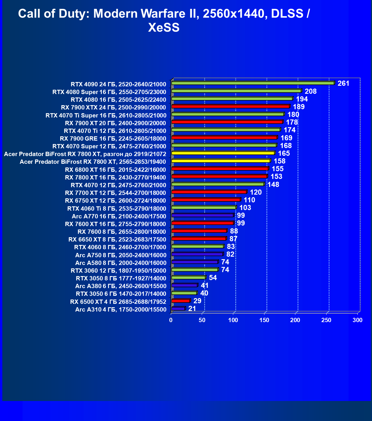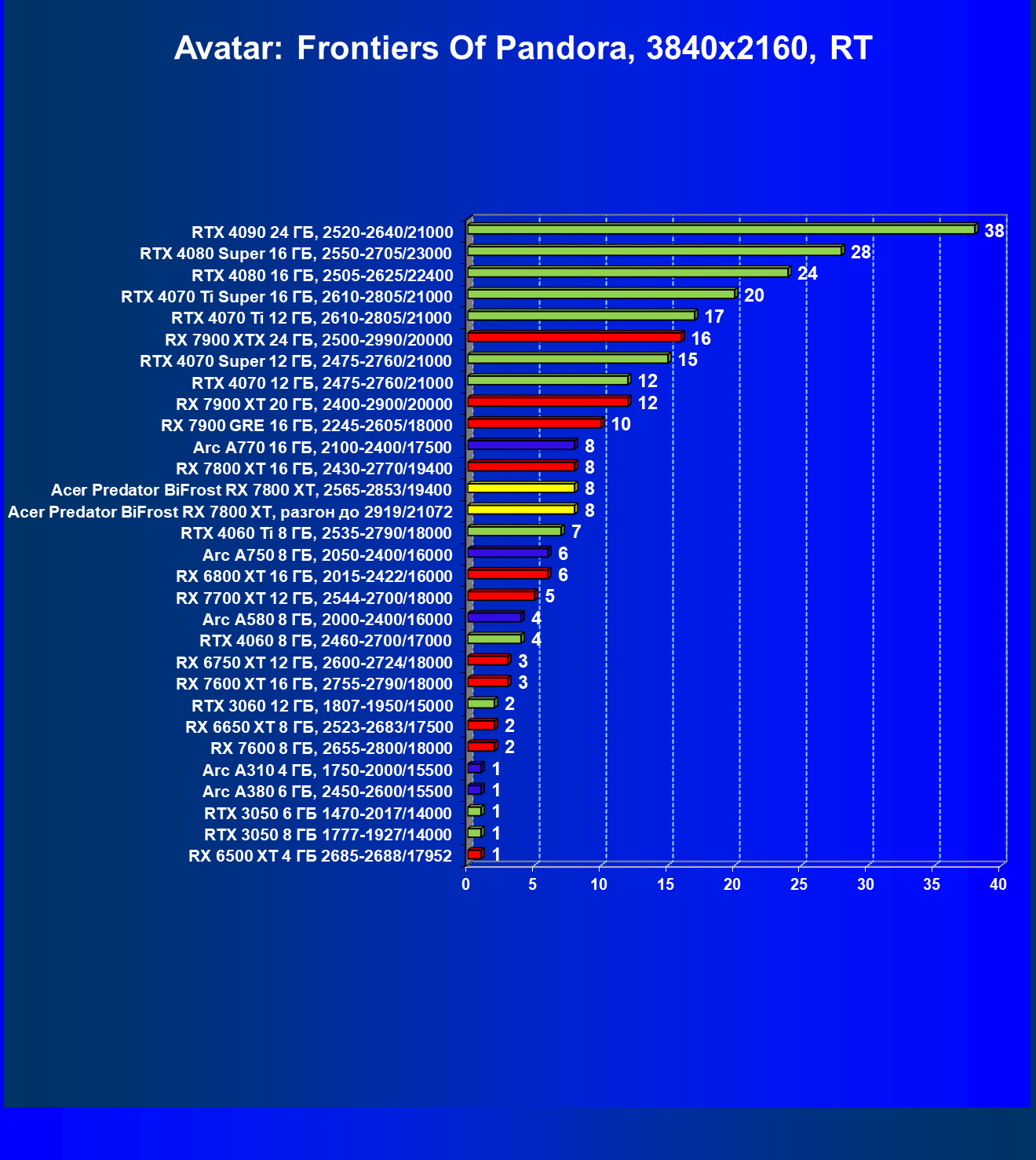 | 12 | Acer Predator BiFrost RX 7800 XT, 2565—2853/19400 | 1717 | 301 | 57 000 |