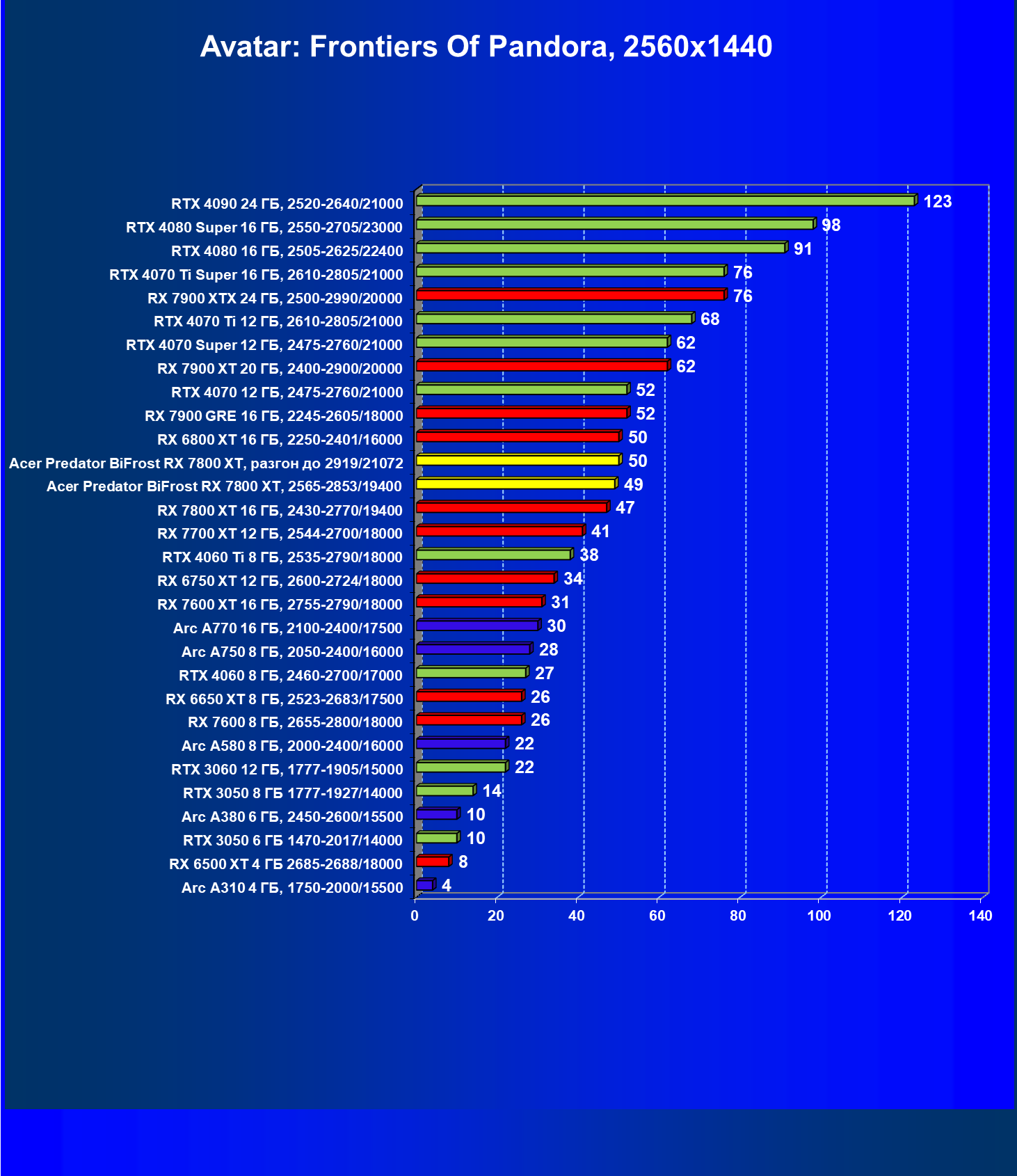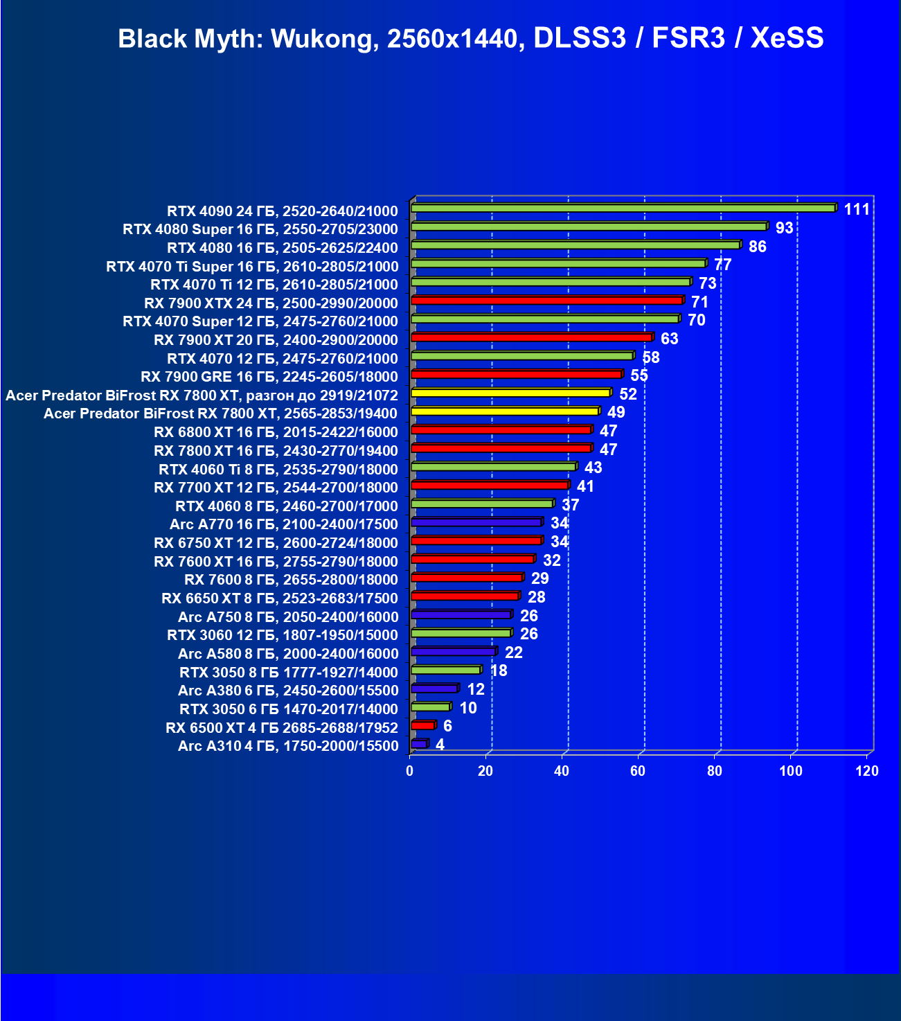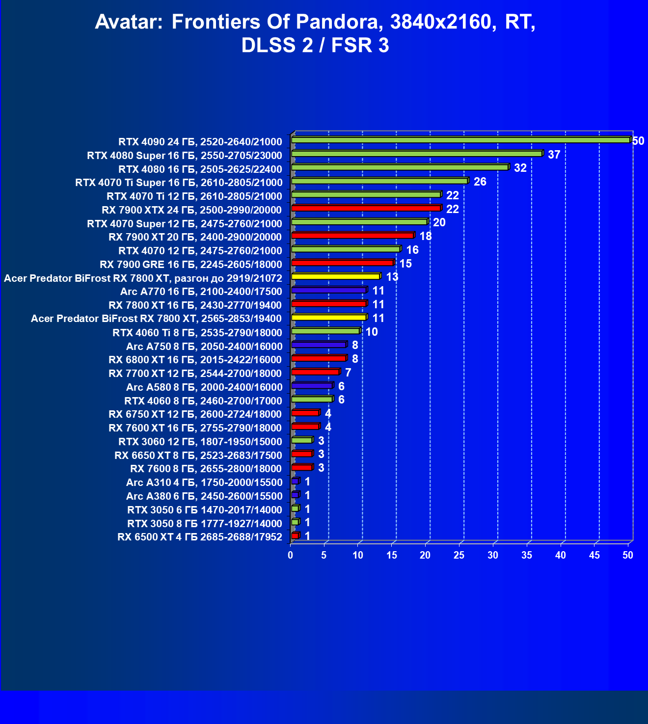 | 12 | Acer Predator BiFrost RX 7800 XT, 2565—2853/19400 | 1717 | 301 | 57 000 |