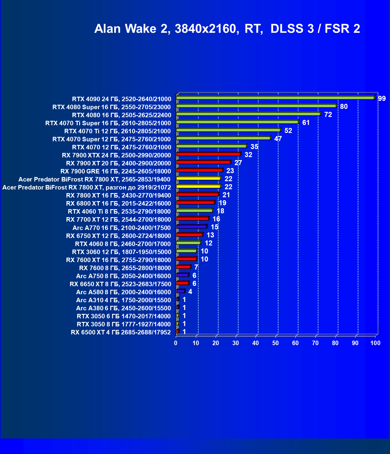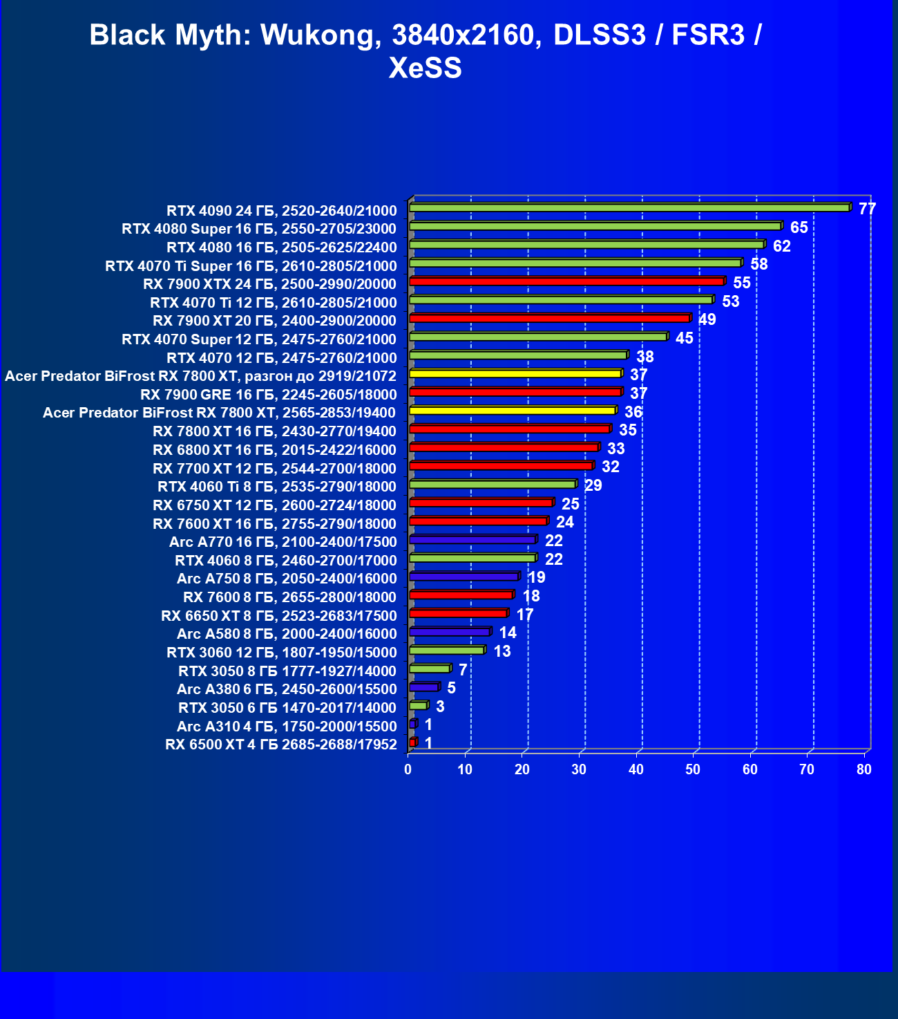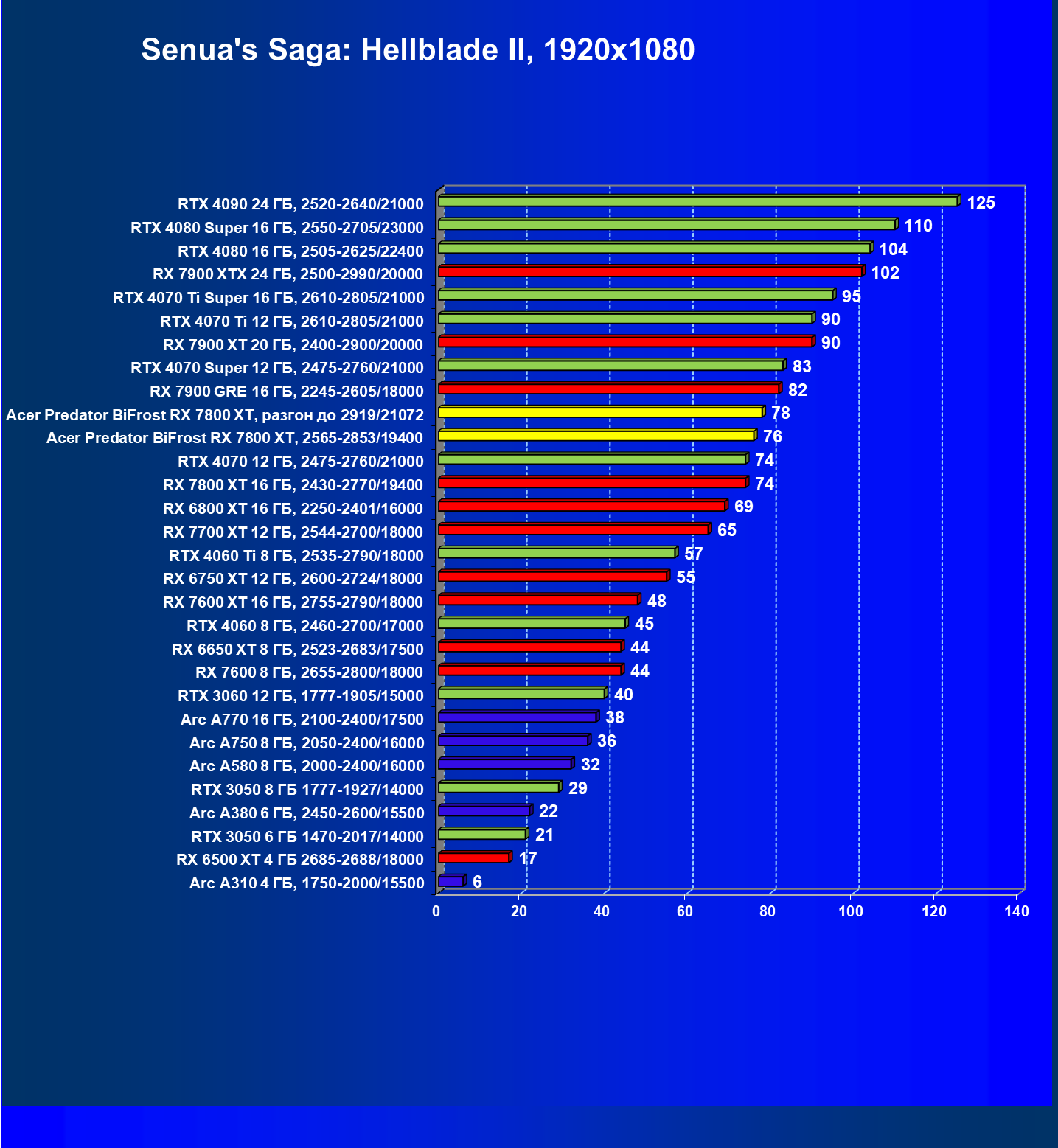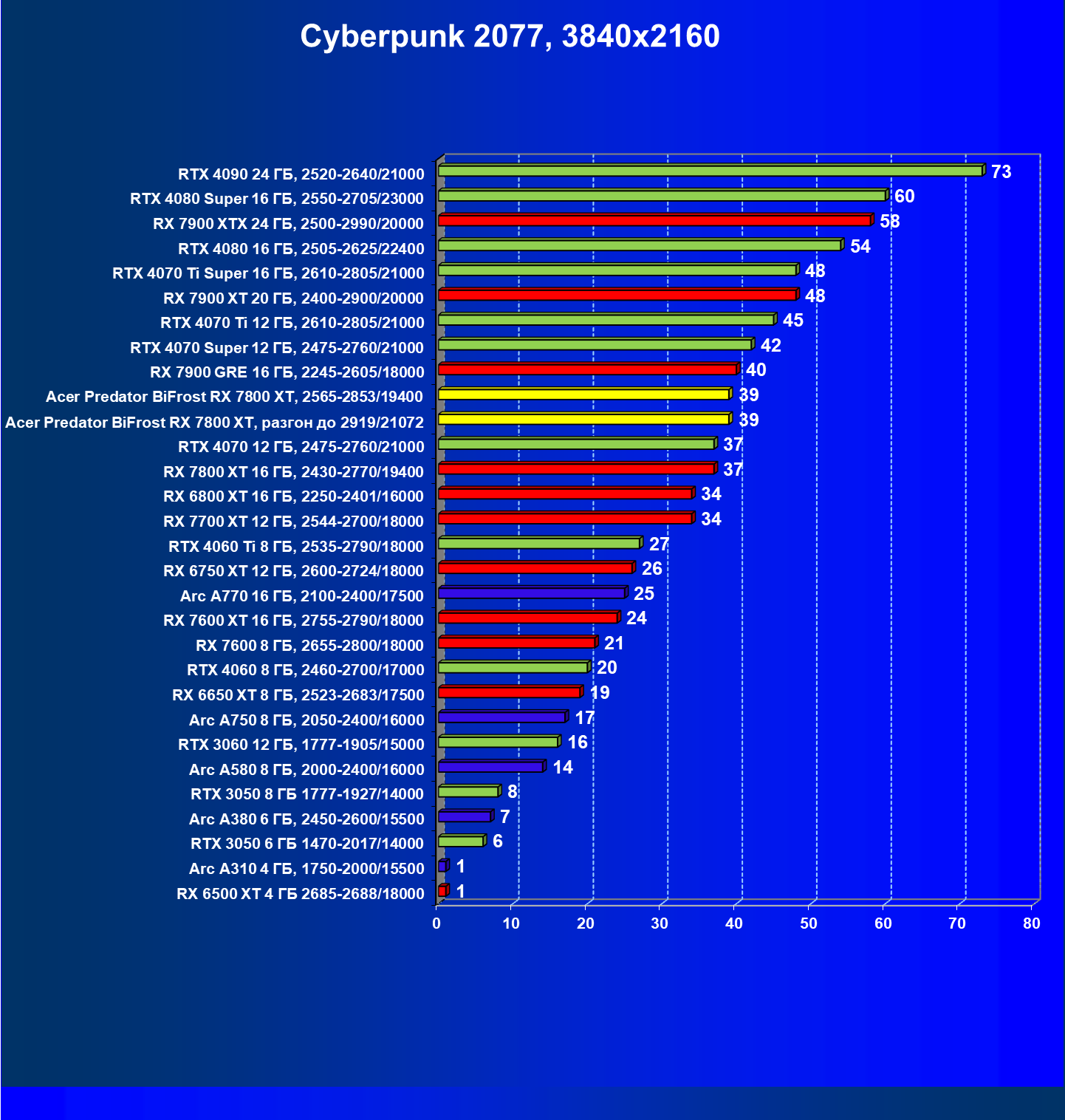 | 11 | Acer Predator BiFrost RX 7800 XT, разгон до 2919/21072 | 311 | 1775 | 57 000 |