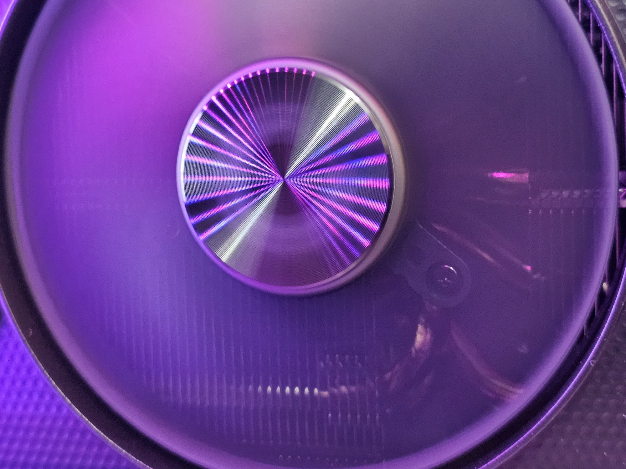 Поверх радиатора установлен кожух с тремя вентиляторами ∅80 мм, у которых концы лопастей соединены кольцом, что помогает организовать более узкий, но мощный поток воздуха.