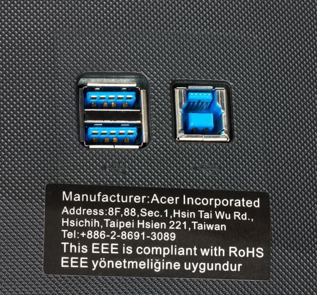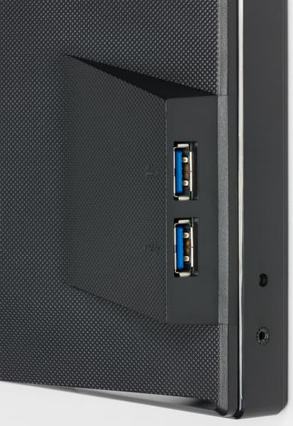 Монитор оснащен двумя цифровыми входами в полноразмерном варианте: DisplayPort и HDMI. Есть встроенный концентратор USB (3.0) на четыре порта. Верхний из двух выходов USB на торце поддерживает режим быстрой зарядки (не указано, какой именно вариант реализован). Указано, что зарядка работает только при включенном мониторе. Выбор входа осуществляется в основном или коротком меню установок. Цифровые аудиосигналы после преобразования в аналоговый вид выводятся на встроенные громкоговорители или через гнездо миниджек 3,5 мм. К этому гнезду можно подключить внешнюю активную акустическую систему или наушники. Мощности выхода хватило, чтобы в 32-омных наушниках с чувствительностью 112 дБ громкость была достаточной, но без запаса. Качество звука в наушниках хорошее: звук чистый, в паузах шума не слышно, диапазон воспроизводимых частот широкий. Встроенные громкоговорители для их класса звучат ожидаемо: достаточно громко для сидящего перед монитором, без выраженных перегрузок, с различимым стереофоническим эффектом, но совсем без низких частот и с явными паразитными резонансами от пластиковых панелей корпуса монитора.