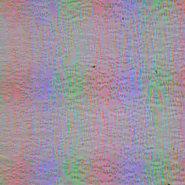 Зерно этих дефектов в несколько раз меньше размеров субпикселей (масштаб этих двух фотографий одинаковый), поэтому фокусировка на микродефектах и «перескок» фокуса по субпикселям при изменении угла зрения выражены слабо, из-за этого нет и «кристаллического» эффекта.