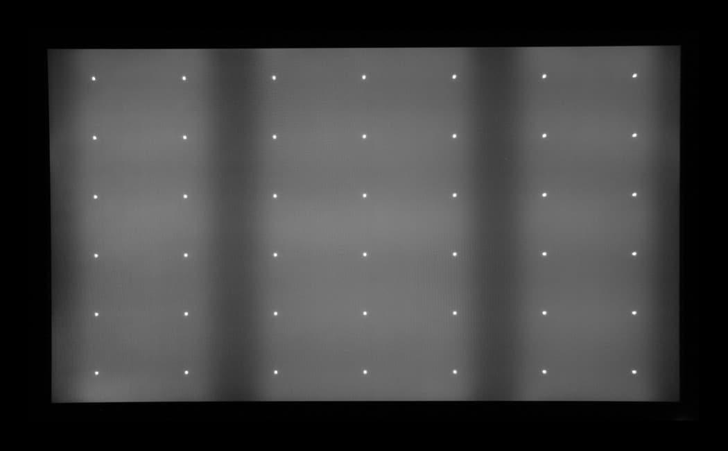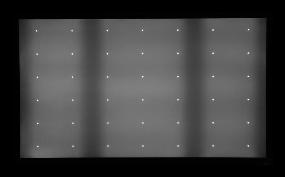 Измерения яркости проводились в 25 точках экрана, расположенных с шагом 1/6 от ширины и высоты экрана (границы экрана не включены, настройки монитора установлены в значения, обеспечивающие максимальную яркость и контрастность в режиме SDR). Контрастность вычислялась, как отношение яркости полей в измеряемых точках. Динамическая регулировка яркости в данном тесте отключена.