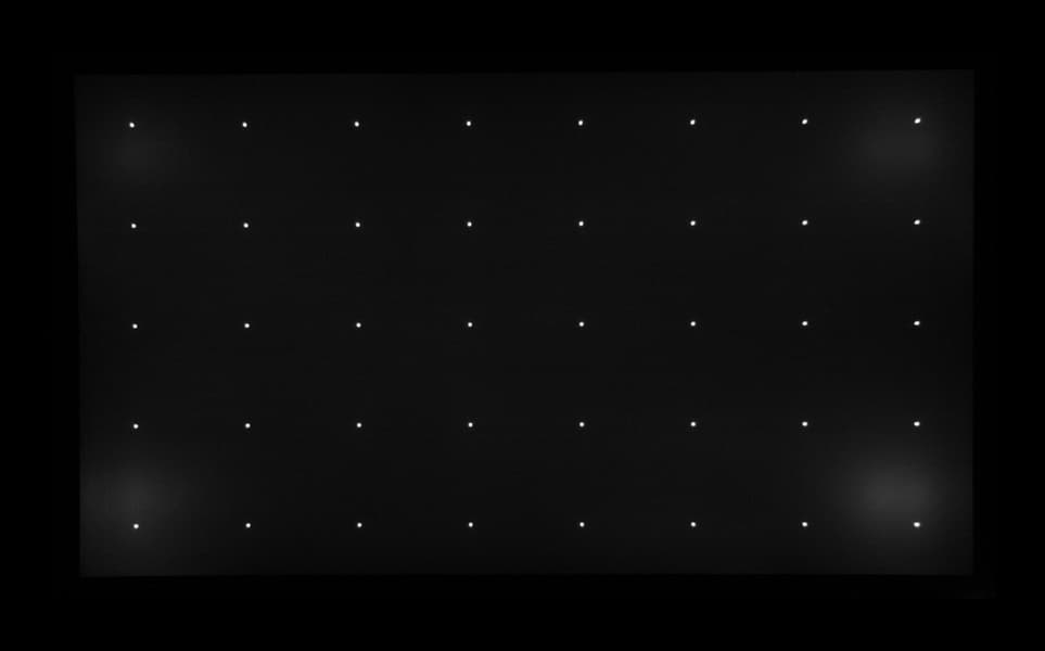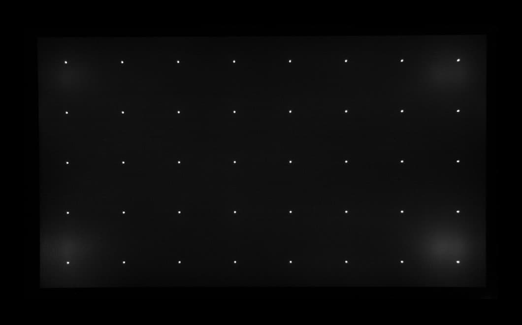 Это фотография. В реальности глаз видит другую картинку — ореол вокруг ярких объектов на черном фоне почти незаметен, контрастности матрицы достаточно, чтобы существенно снизить его заметность, да и алгоритм управления яркостью зон не допускает чрезмерной засветки. Заметить можно, скорее, затемнение на белом (светлом) фоне вокруг темных объектов. Тестовые изображения с белыми точками позволяют выявить ситуации, когда управление подсветкой не очень хорошо справляется со своей задачей: