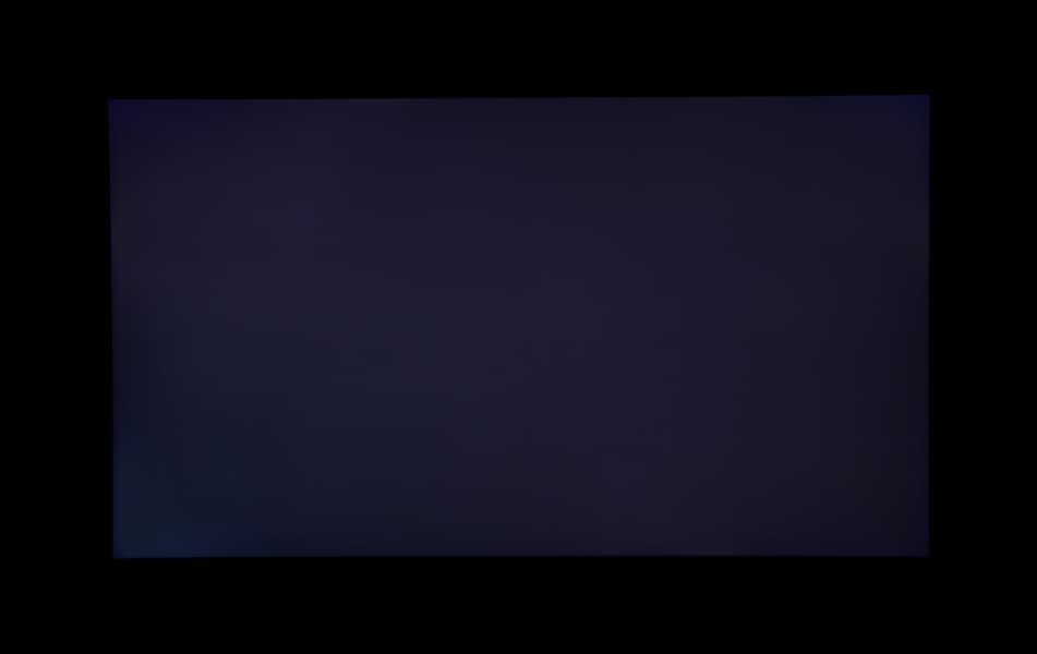 Равномерность белого очень хорошая, а черного, и как следствие, контрастности — заметно хуже. Контрастность для данного типа матриц по современным меркам хорошая. Визуально видно, что черное поле местами засвечено. Фотография ниже это демонстрирует: