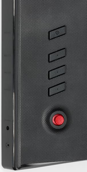 В правой нижней части задней панели очень близко к правому торцу вертикально в ряд расположены четыре механические кнопки управления и 5-позиционный джойстик. На боковой грани окантовки напротив кнопок и джойстика есть едва различимые рельефные метки.
