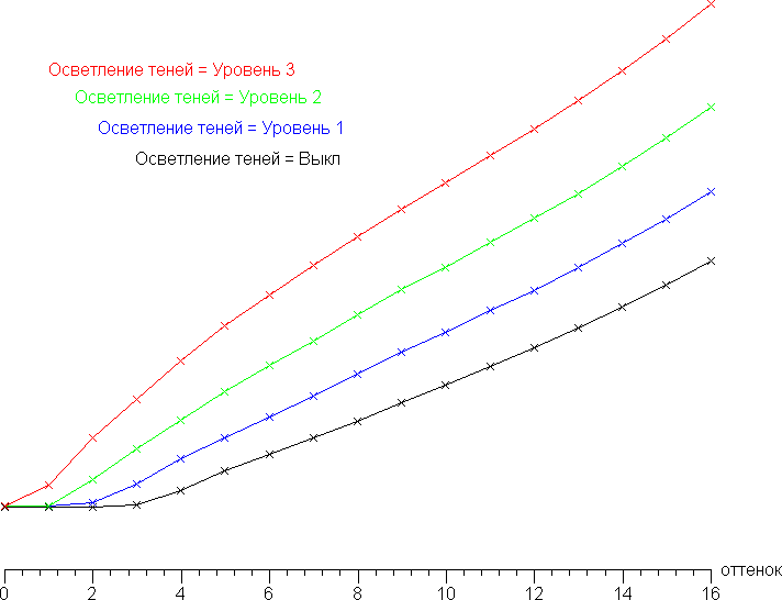 Дополнительной настройкой Осветление теней можно скорректировать темную область гамма-кривой, что улучшает различимость деталей в тенях:
