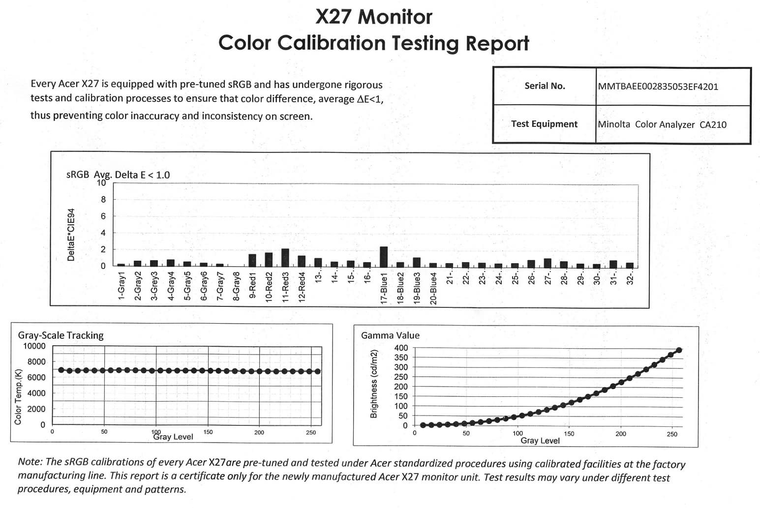 К каждому монитору прилагается отчет о выполненной на заводе калибровке: