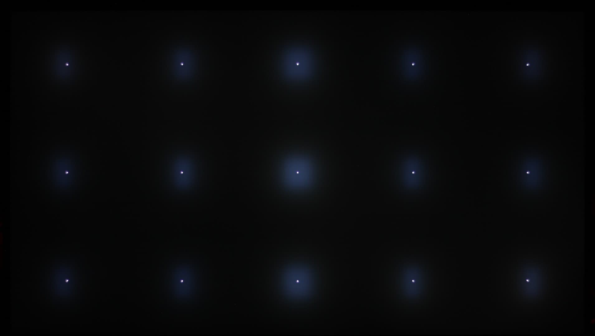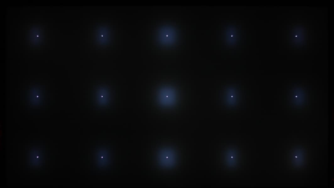 Так как зон подсветки во много раз меньше, чем пикселей в матрице (8 294 400), то каждая зона освещает область условно из 7200 пикселей (на самом деле границы не четкие). Из-за этого на некоторых типах изображений можно увидеть артефакты в виде локальной засветки вокруг ярких объектов на темном фоне и затемнение около внутренних границ ярких объектов. Например, в случае тестового изображения с белыми точками (для наглядности мы увеличили ISO и выдержку):