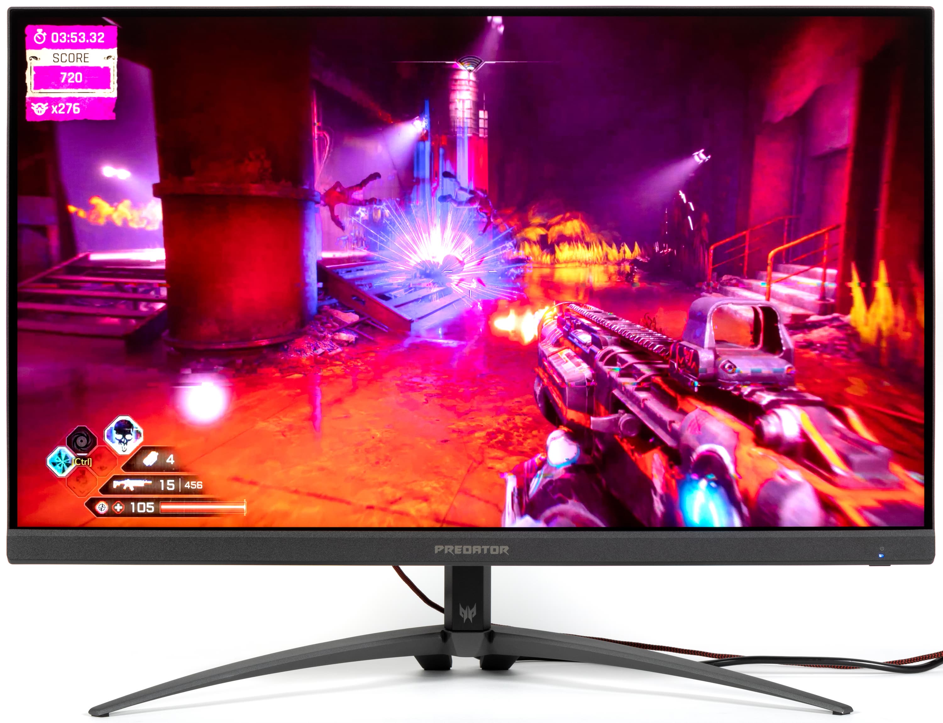 Acer Predator X32Q FS имеет большой яркий экран с разрешением 4К и многозонной светодиодной подсветкой, хороший набор игровых функций и дизайн, который можно назвать типичным для игрового монитора. По всем признакам это игровой монитор высокого класса. Есть поддержка частоты обновления до 144 Гц включительно, AMD FreeSync Premium Pro, а также хорошая реализация HDR. Монитор отлично подходит для любых игр и, например, для просмотра кино и для работы с большим количеством информации. Отметим, что монитор можно использовать в качестве док-станции для ноутбука, так как выходной мощности порта USB-C в 65 Вт должно хватать в большинстве случаев.