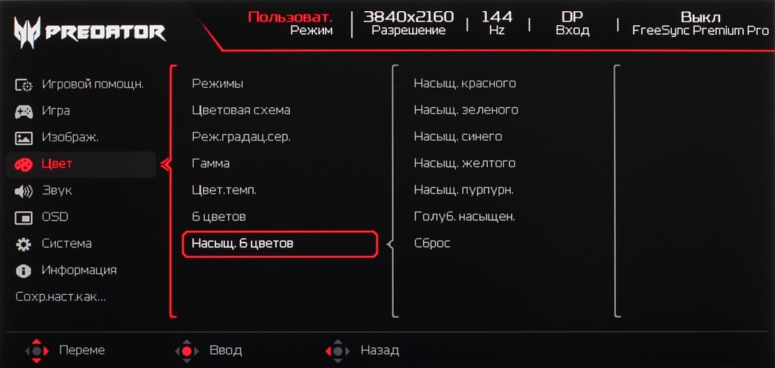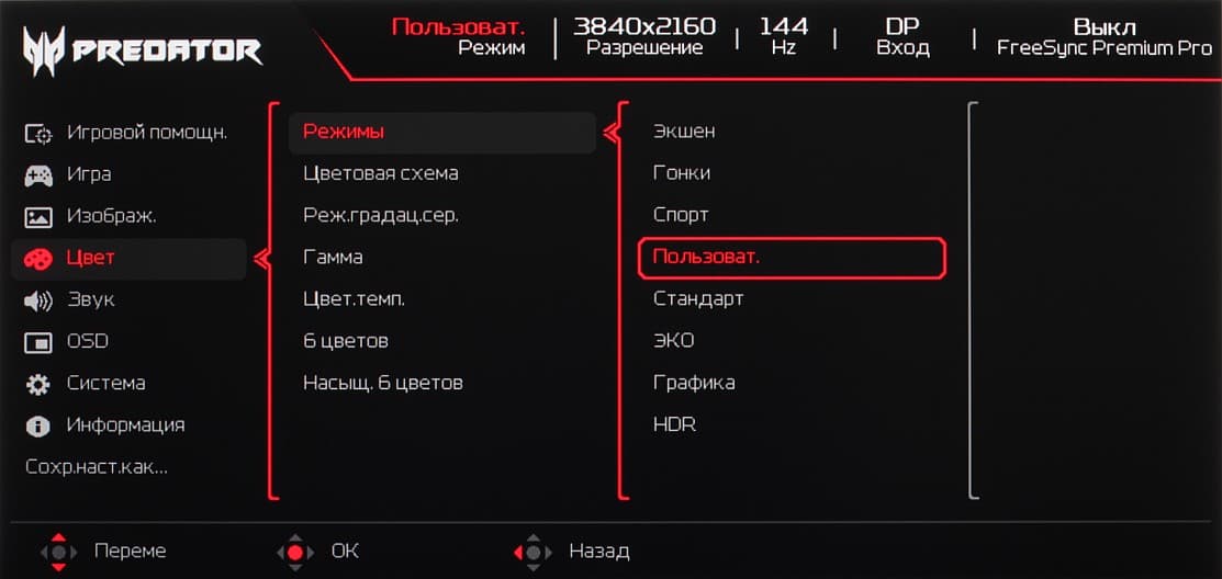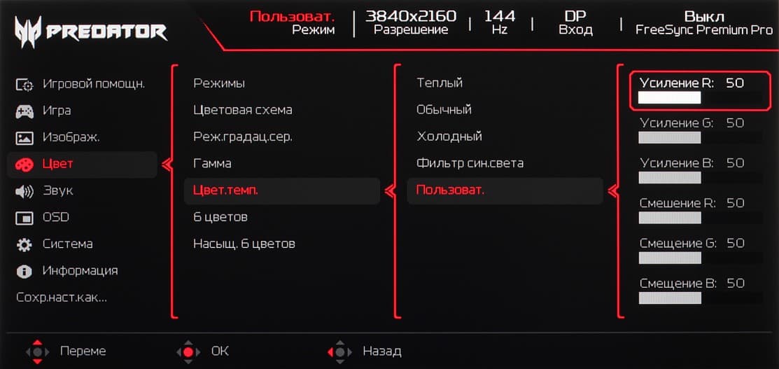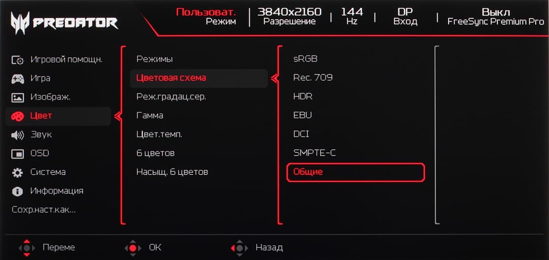 К сожалению, в случае корректировки цветового охвата, часть настроек, в частности настройки цветового баланса, становятся не доступными. Это типичная ошибка многих производителей мониторов. Отметим, что на экранах с широким цветовым охватом без соответствующей коррекции цвета обычных изображений, оптимизированных для устройств sRGB, выглядят неестественно насыщенными. Впрочем, как правило, в развитых OS, в Windows в частности, и/или в более-менее продвинутом ПО для работы с изображениями нужная коррекция цвета достигается при использовании системы управления цветом. Например можно использовать цветовой профиль, созданный нами во время тестирования с помощью ПО DisplayCAL. Впрочем, в большинстве случаев достаточно будет выбрать профиль sRGB в мониторе.