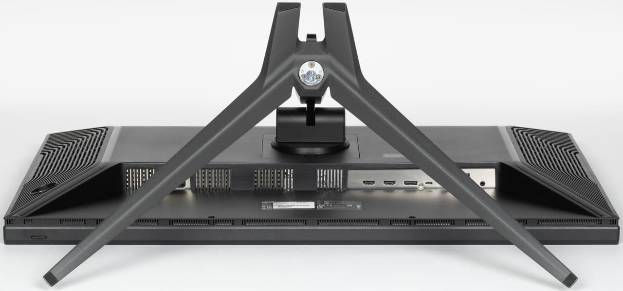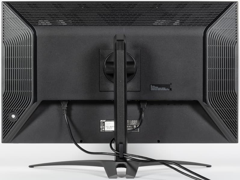 Многочисленные вентиляционные решетки на задней панели и по периметру блока экрана способствуют охлаждению внутренностей монитора. За задней панелью справа и слева расположены встроенные в монитор крохотные громкоговорители с вытянутыми диффузорами. Громкоговорители установлены в корпусах, закрепленных на упругих стойках.