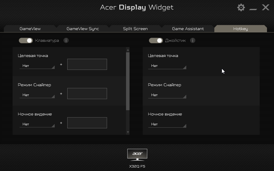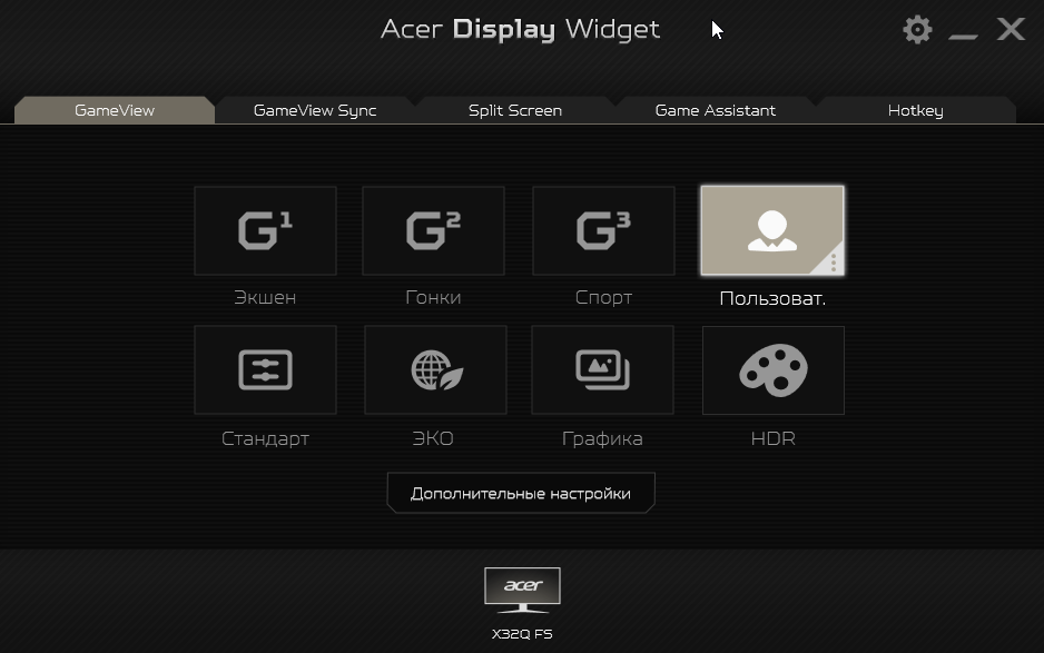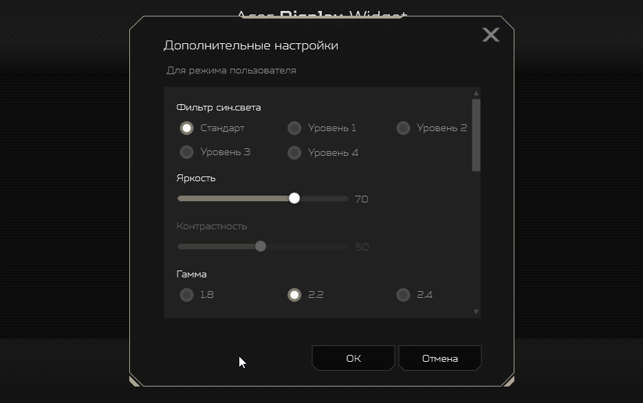 - Настройка монитора с помощью приложения Acer Display Widget