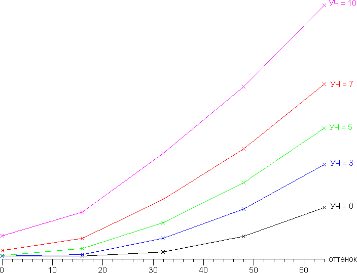 Дополнительной настройкой Усиление черного (от 0 до 10, по умолчанию 5, на графиках — УЧ) можно скорректировать гамма-кривую для улучшения/ухудшения различимости деталей в тенях: