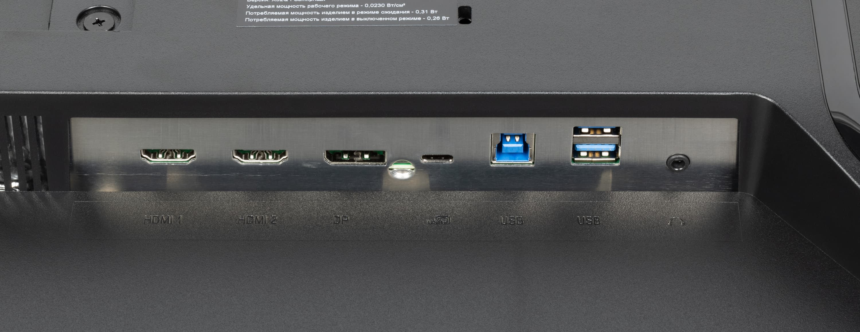 В режиме ожидания монитор потребляет порядка 7 Вт (многовато), а в условно выключенном состоянии — 0,7 Вт. Механический выключатель на задней панели полностью отключает монитор от сети.