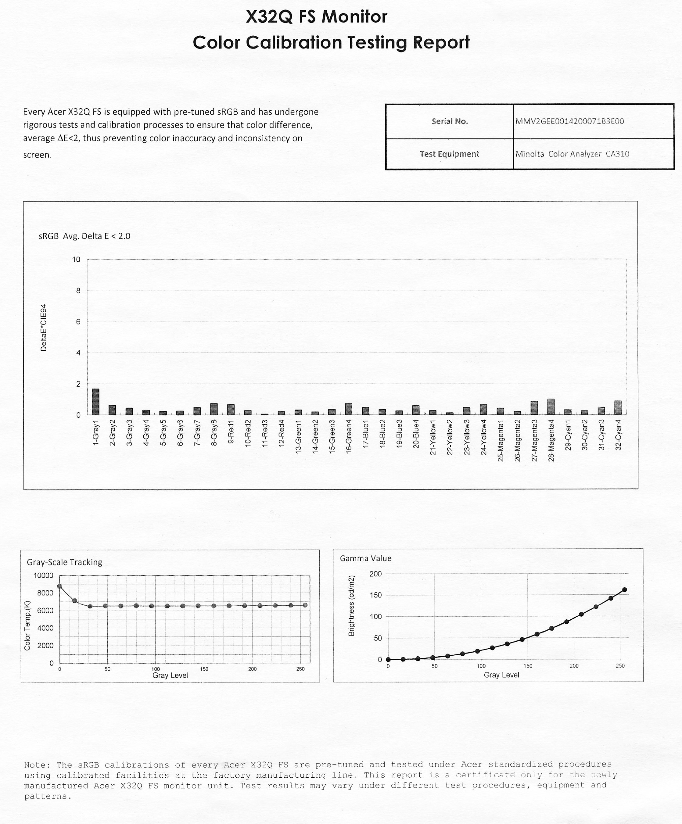 К монитору прилагается отчет о качестве цветового баланса:
