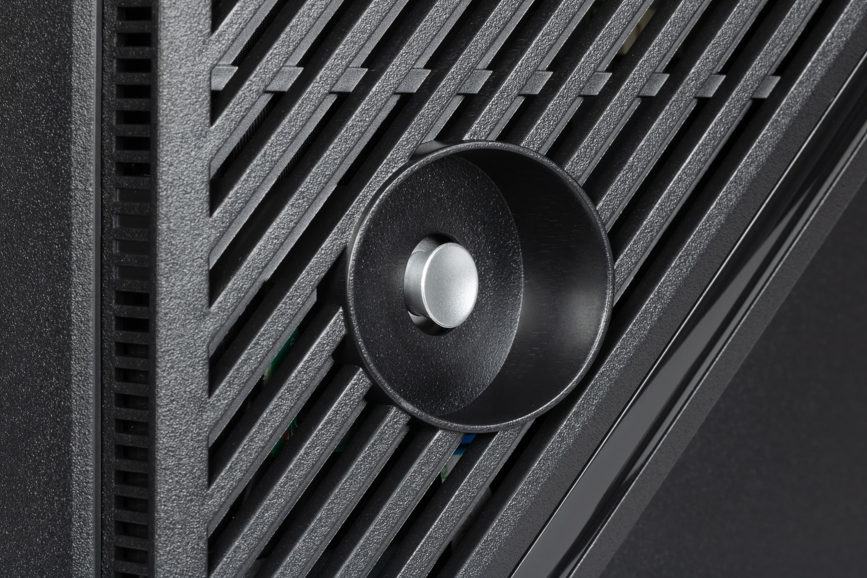 В правой нижней части задней панели близко к правому торцу находится 5-позиционный джойстик. При необходимости дотянуться до него можно и снизу.