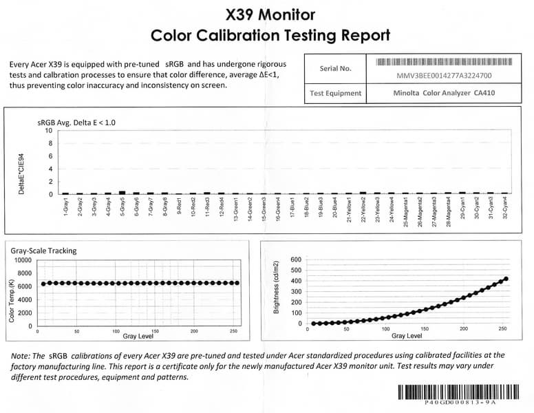 К монитору (к каждому конкретному экземпляру) прилагается отчет о качестве цветового баланса: