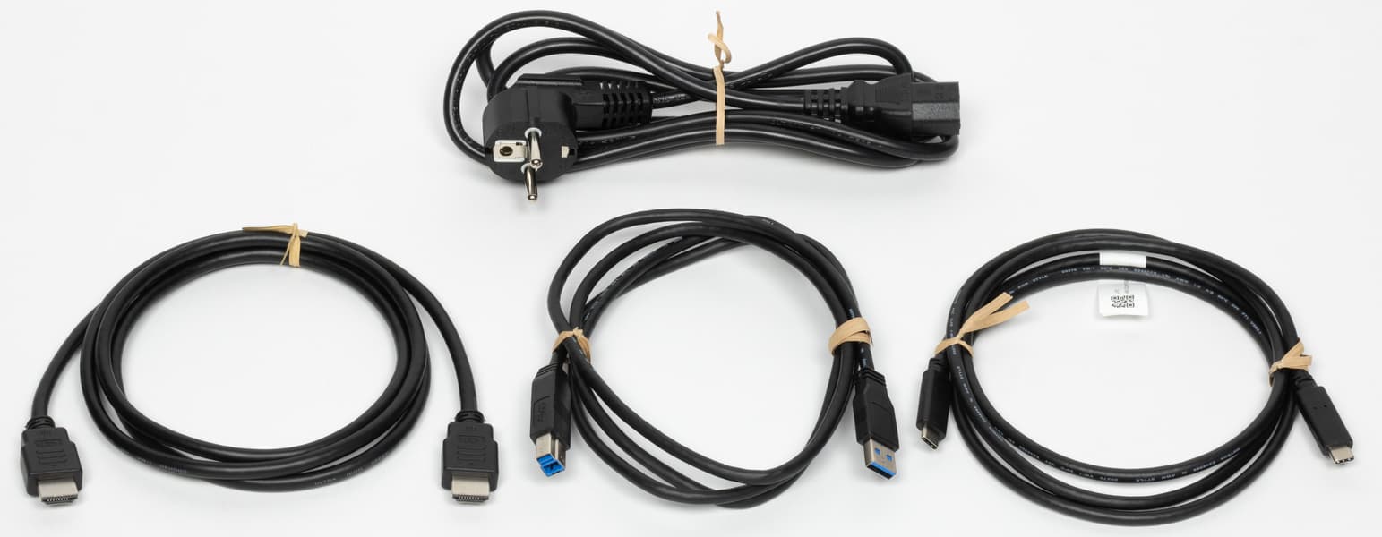 К монитору прилагается неплохой комплект кабелей (но не очень длинных). Качество кабелей с виду хорошее, и качество подтверждено тем, что в ходе тестирования с их использованием даже на предельных режимах никаких артефактов не было выявлено.