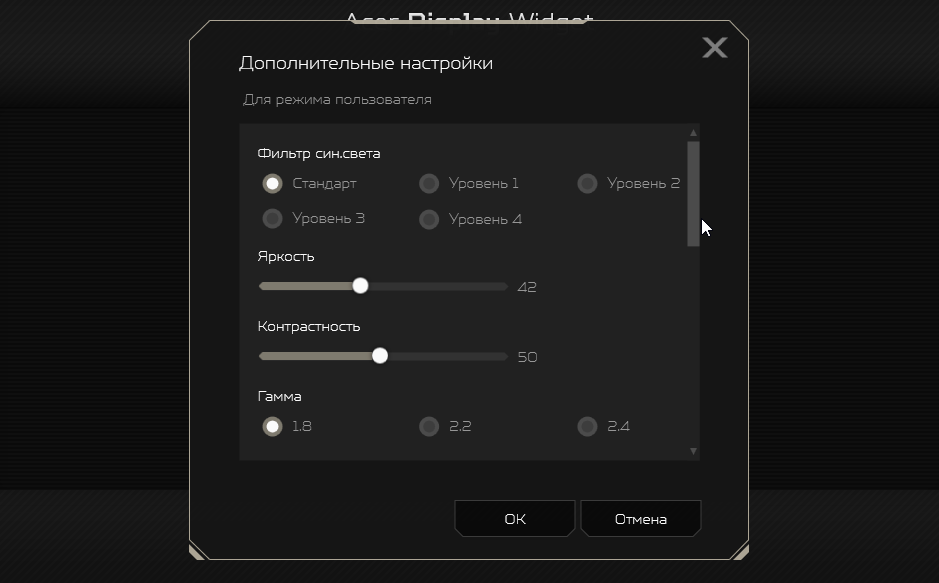 - Настройка монитора с помощью приложения Acer Display Widget