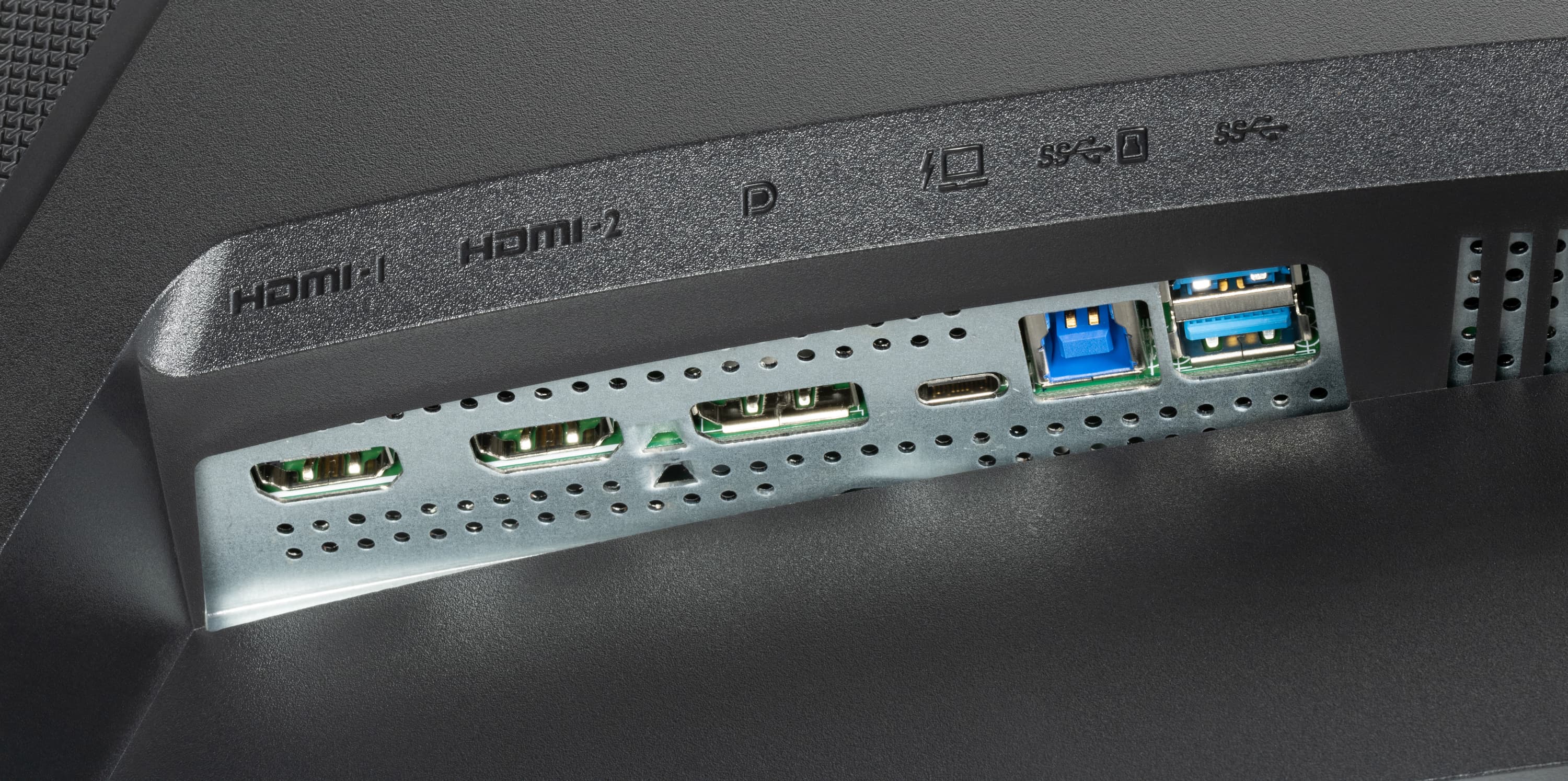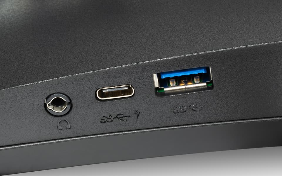 Интегрированный в монитор четырехпортовый концентратор USB 3.2 Gen 1 (три порта USB-A и USB-C, который на нижнем торце) может быть доступен через подключение к порту USB типа B или USB типа C (который в нише в видеовходами) и в случае ввода видеосигнала через второй интерфейс. Нужный вход концентратора выбирает пользователь в меню установок. Также есть автоматический выбор входа концентратора, что реализует функцию KVM — к монитору по USB можно подключить клавиатуру и мышь (а можно и накопитель), чтобы затем их использовать с двумя источниками видеосигнала, например, с ПК и ноутбуком, или с ПК и планшетом. При этом одно из устройств должно быть подключено к монитору по USB-C, а второе — по USB-B. При вводе видеосигнала по USB-C работает автоматический выбор этого входа в качестве входа для концентратора при переключении на USB-C и автоматический выбор USB-B при переключении на другой вход. Только этот порт USB типа C поддерживает подачу питания на подключенное к ним устройство с заявленной мощностью до 90 Вт.