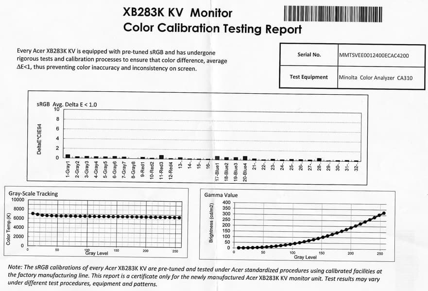 К каждому монитору прилагается отчет о выполненной на заводе калибровке: